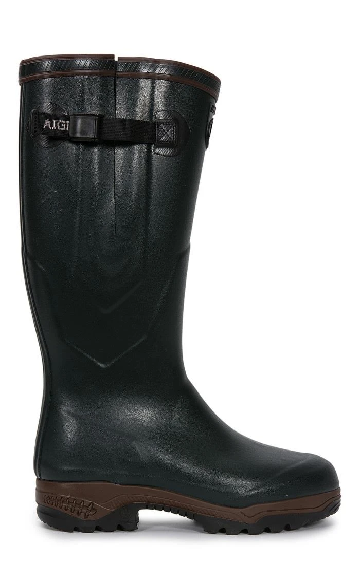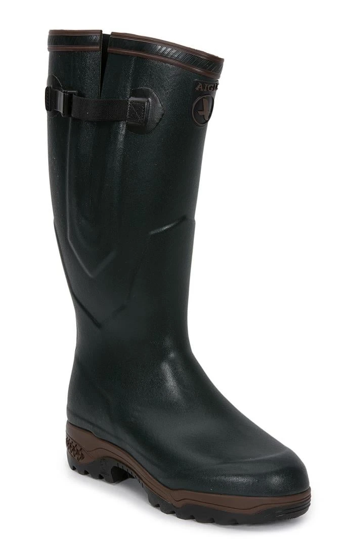 The Aigle Parcours Iso Mens Boot is a highly functional and practical wellington boot. this boot has been inspired by hiking boot technology. It has an adjustable calf strap for a better, more comfortable fit. With shock-absorbent and hard wearing soles, as well as the treated polyester lining this Wellington boot is rot proof, washable and has self cleaning cleats which make this boot a great outdoor must.