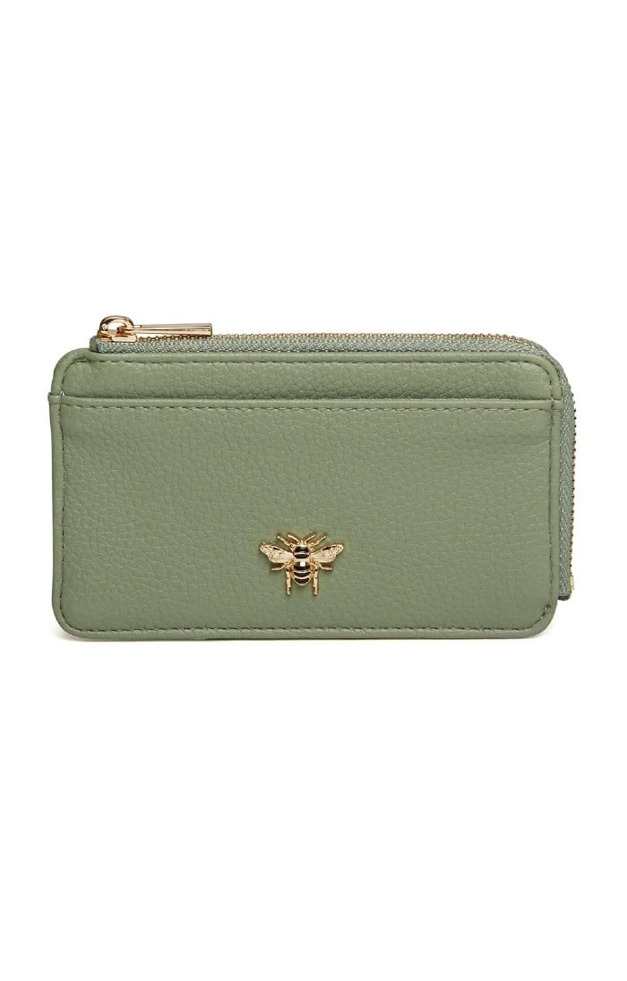 Keep everything organised and secure with this charming and compact coin purse from Alice Wheeler. A perfect match for any of our Alice Wheeler bags, this delightfully crafted purse is made from super soft textured faux leather and features a metallic zip fastening and delicate bee motif.