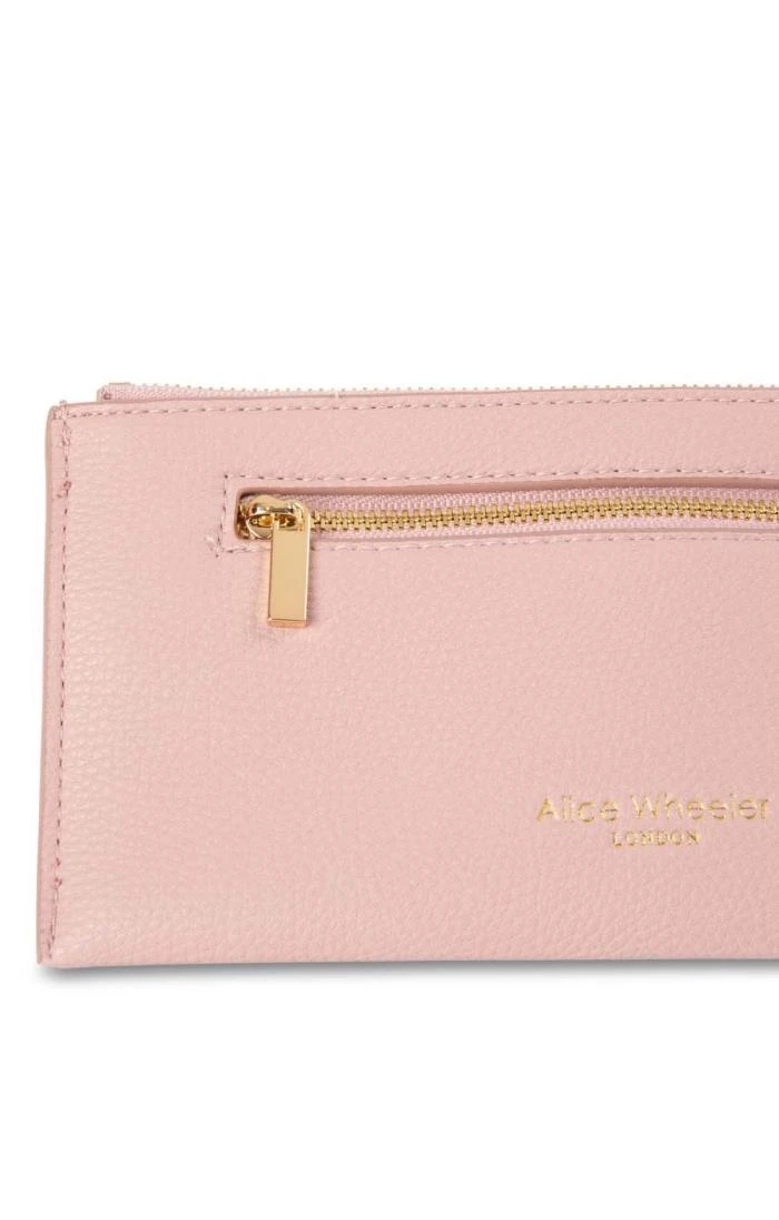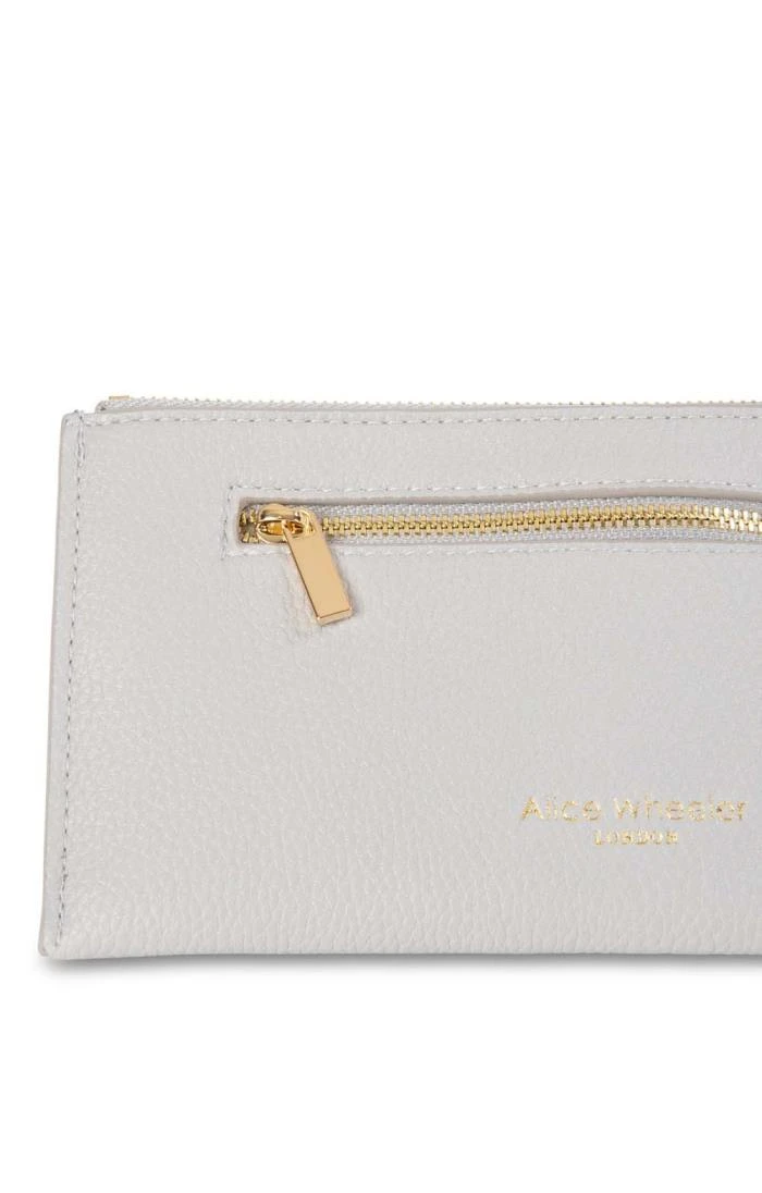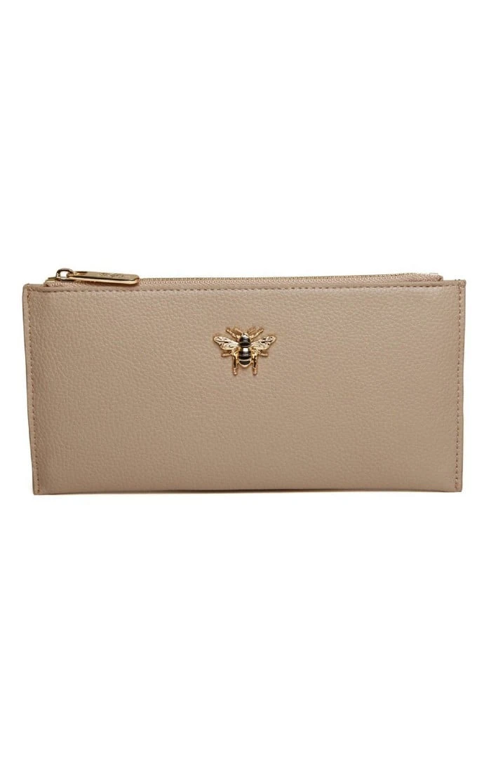 Simple yet striking, this elegant purse from Alice Wheeler is the perfect fit to slip in to your favourite handbag. Carefully crafted from delicately textured faux leather, this purse is fastened by a metallic zip to the top and features a charming bumblebee motif to one side, as well as an external zip pocket to the other. Internally, the main compartment features six card slots.