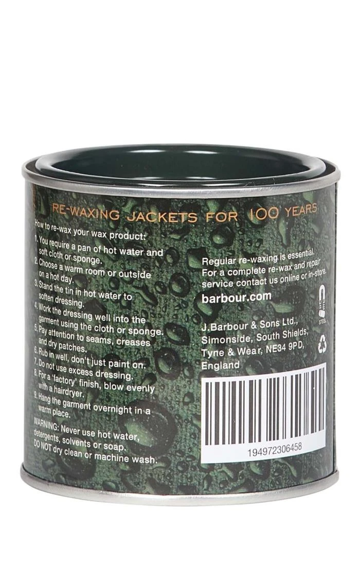 Barbour waterproof and Thorn proof wax is the best solution to keep your Barbour products in perfect condition. The Thornproof dressing is the same formula used on the Barbour range within the factory. This ensure that you get the best waterproofing possible to protect your garments. Easy to apply and simple to use, this wax is ideal to protect those worn areas or even re-dress the entire garment.