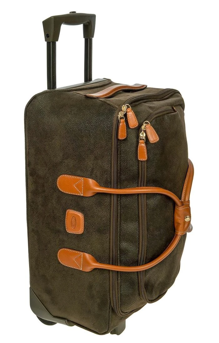 This sophisticated Brics 55cm holdall with wheels has been superbly crafted from suede-effect material for a stylish and long lasting finish. As well as one large central compartment, this attractive cabin bag features zipped internal pockets, an adjustable trolley handle and elegant leather detailing throughout, all courtesy of this exclusive Italian luggage brand.