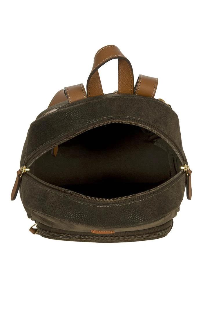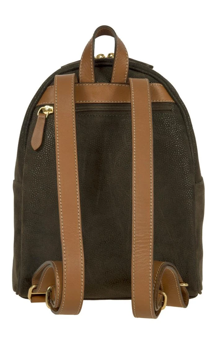 This compact urban backpack by Brics is made from their signature suede-effect material which is both durable and easy to care for. With vegetable tanned Tuscan leather trimmings, adjustable straps and a handy hook strap, it’s a cleverly designed bag that’s as practical as it is pretty. A large zipped front pocket helps to keep your essential items close at hand, while a zip pocket on the back gives an added measure of security for your most valued belongings. Inside, there’s another zipped pocket and two smaller additional pockets to help you organise your accessories. Perfect for keeping your belongings safe and secure when on the go!