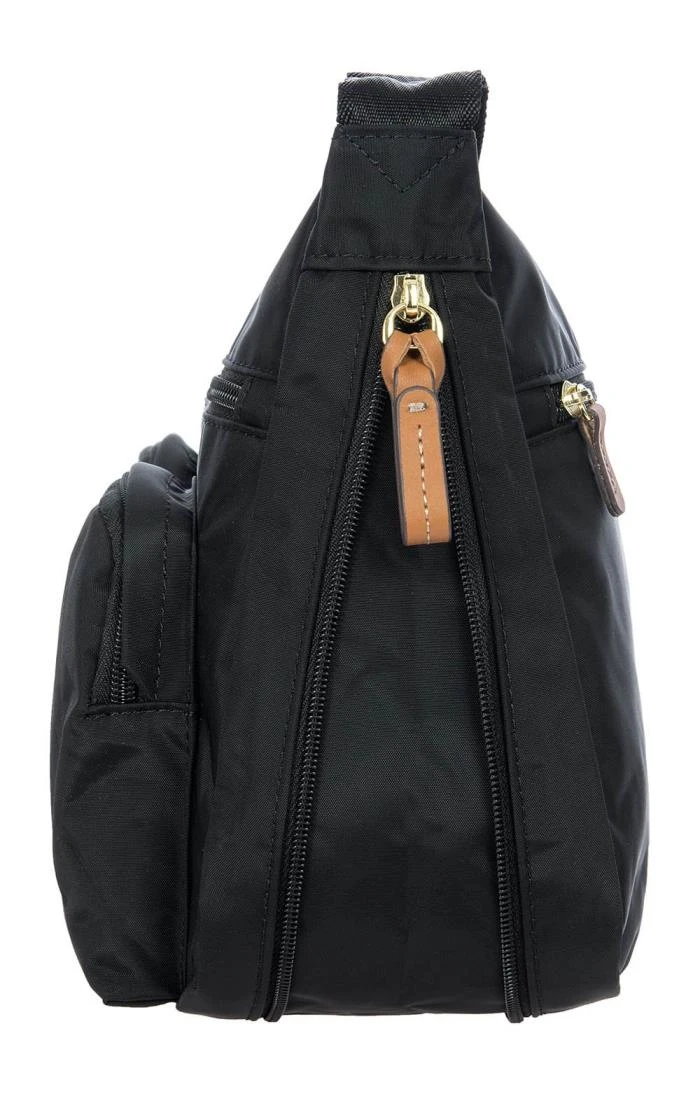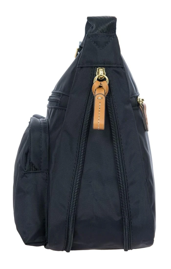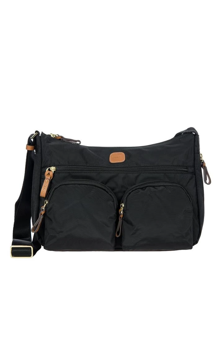 Just the ticket for travel lovers or day-trippers, this Brics two pocket zipped shoulder bag in supple nylon is light as air to carry yet reassuringly robust and secure. Deceptively spacious, a clever zip system opens to give you even more room while the multiple internal external pockets keep your possessions safe and sorted. The adjustable shoulder strap switches easily between cross-body and over-the-shoulder wear. Brics branding and genuine leather trims sign things off with a mark of unmistakable Italian quality.