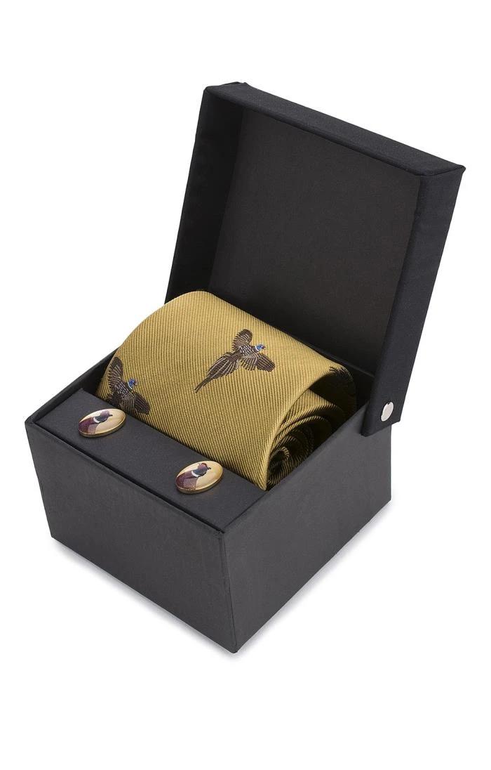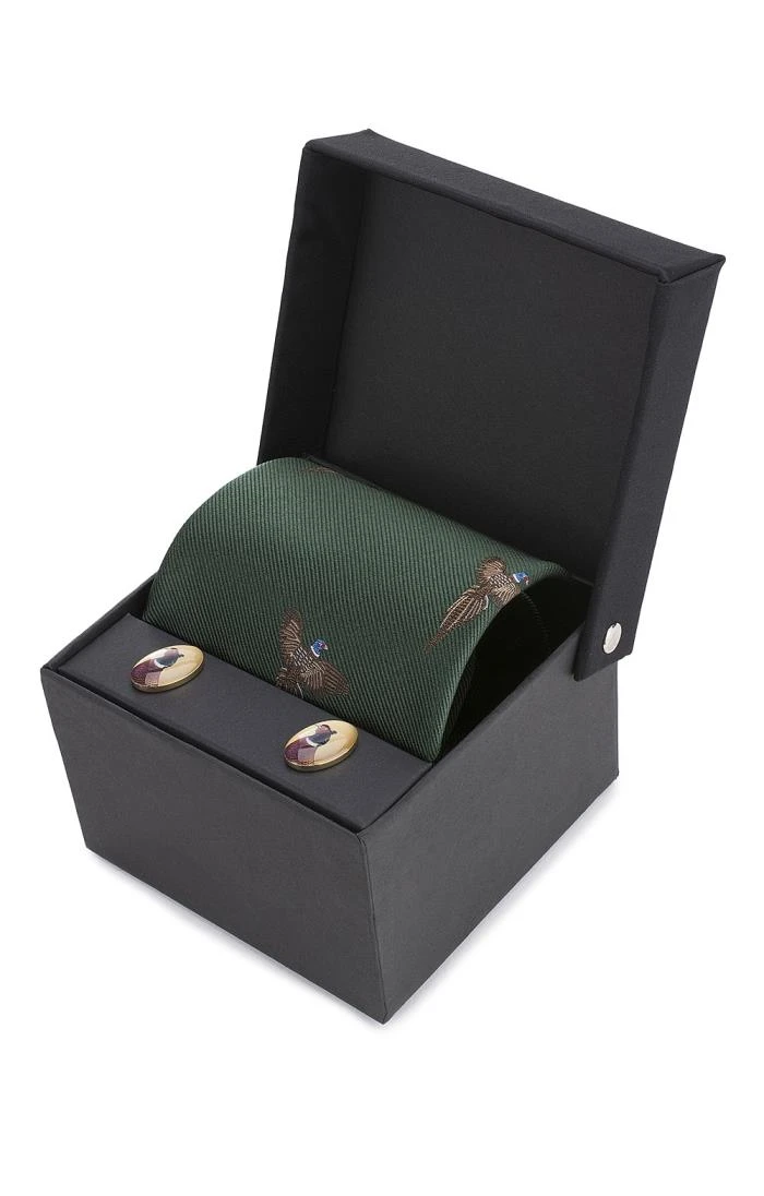 Our Flying Pheasant silk tie and cufflinks set, available in a range of country colours, makes a thoughtful and unusual gift for the keen enthusiast of outdoor pursuits.