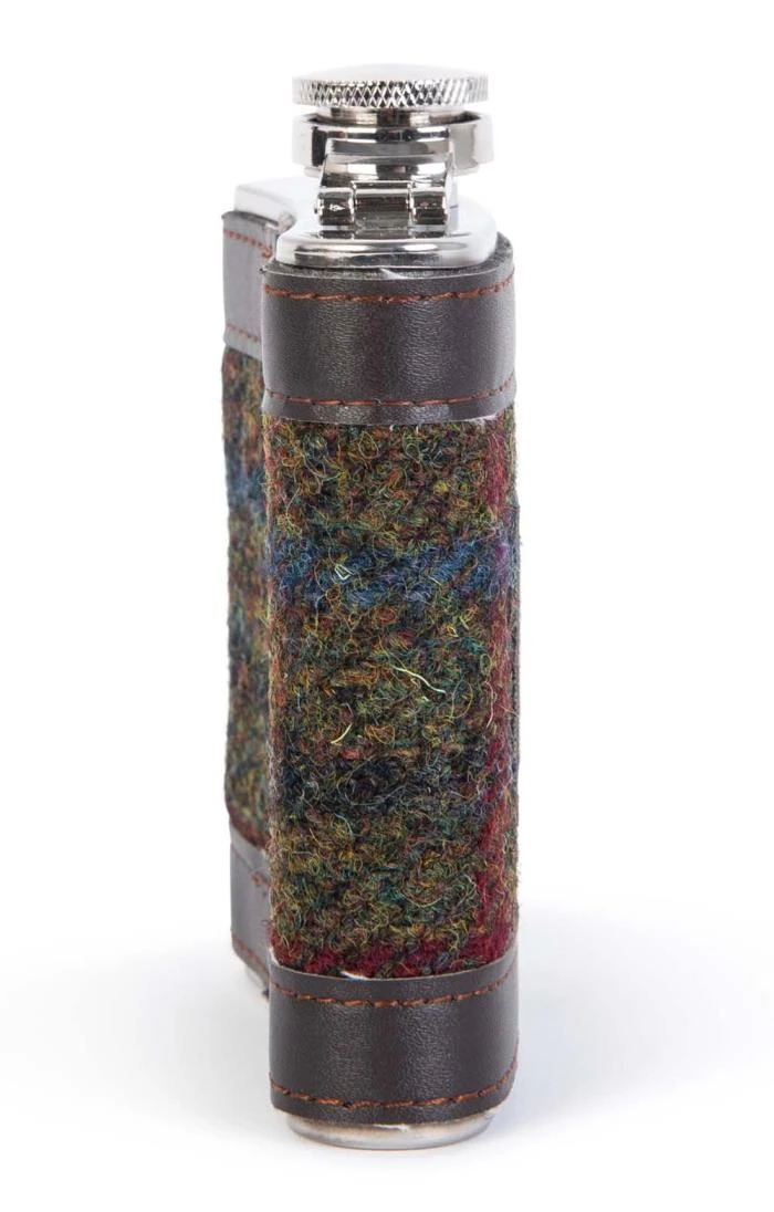 Handmade in Scotland s Outer Hebrides, Harris Tweed s reputation for quality and craftsmanship is known throughout the world. This distinctive hip flask combines Harris Tweed with rich leather and stainless steel to create a unique flask that s sure to turn heads.