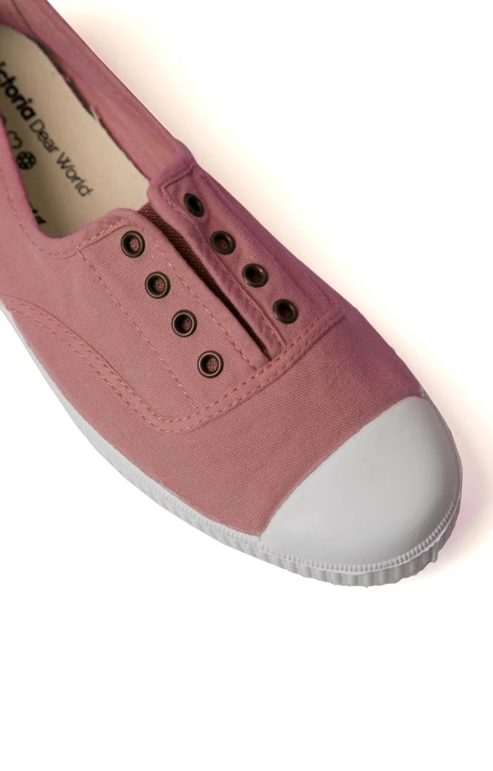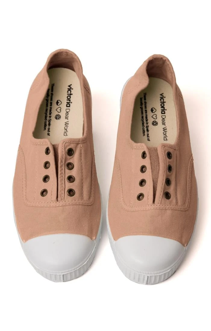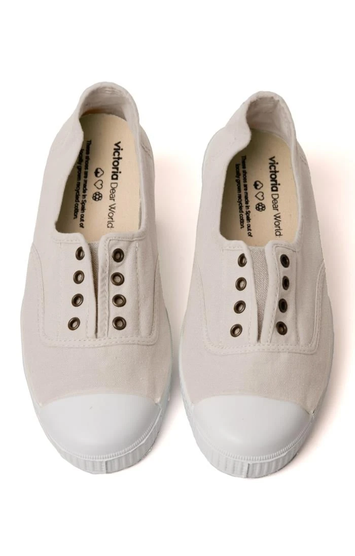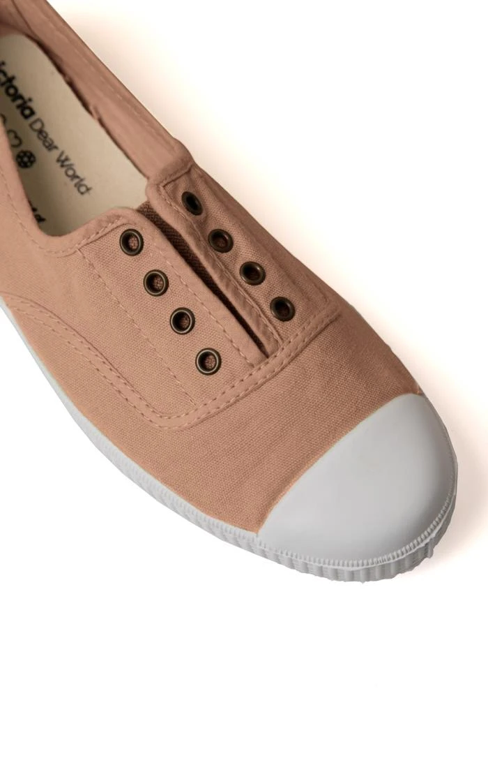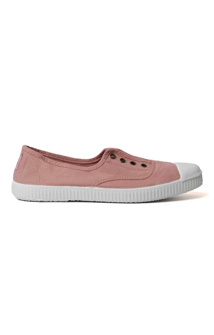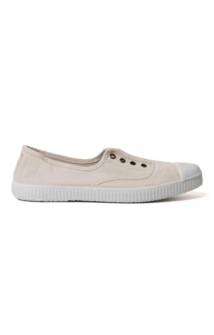 Slip-on sneakers for moments when there is no time to tie, the Inglesa Lona no lace pumps by Spanish brand Victoria are made with recycled cotton for a lighter tread on the planet. Exhibiting an on-trend lived-in look with their empty eyelets and soft fabric uppers, a discreet elastic panel holds them securely on your feet without impacting on their easygoing image.
