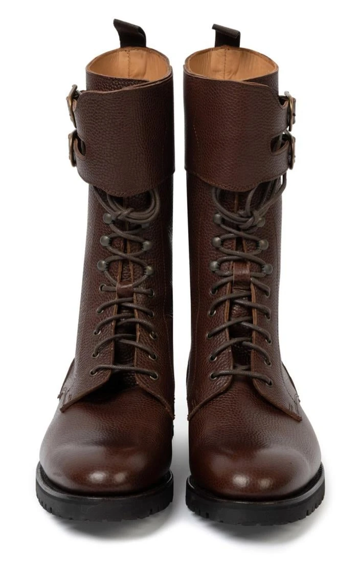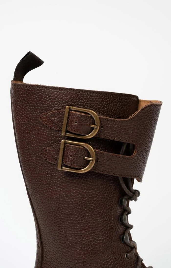 Made in richly textured leather with a stylish buckle detail at the top, this striking three-quarter length buckle boot is a definite trend setter. Durable and hardwearing whilst also being undeniably elegant, this boot has a distinct charm that will draw admiring glances wherever it goes. Hand made in Spain.