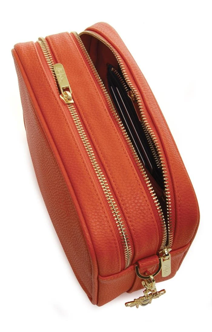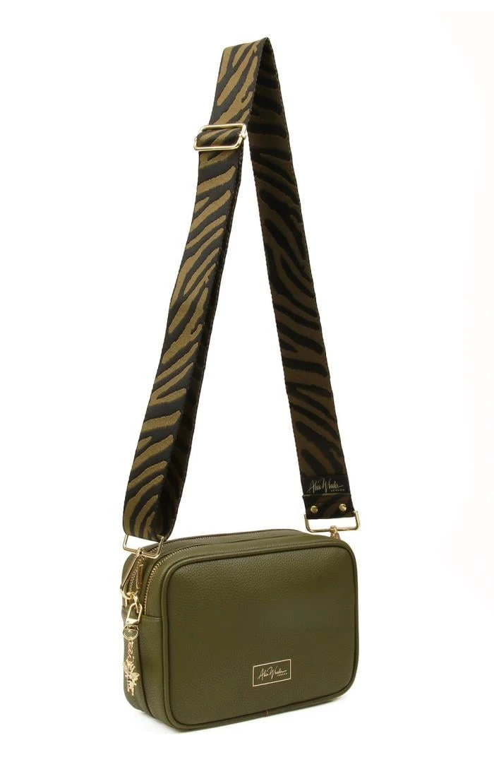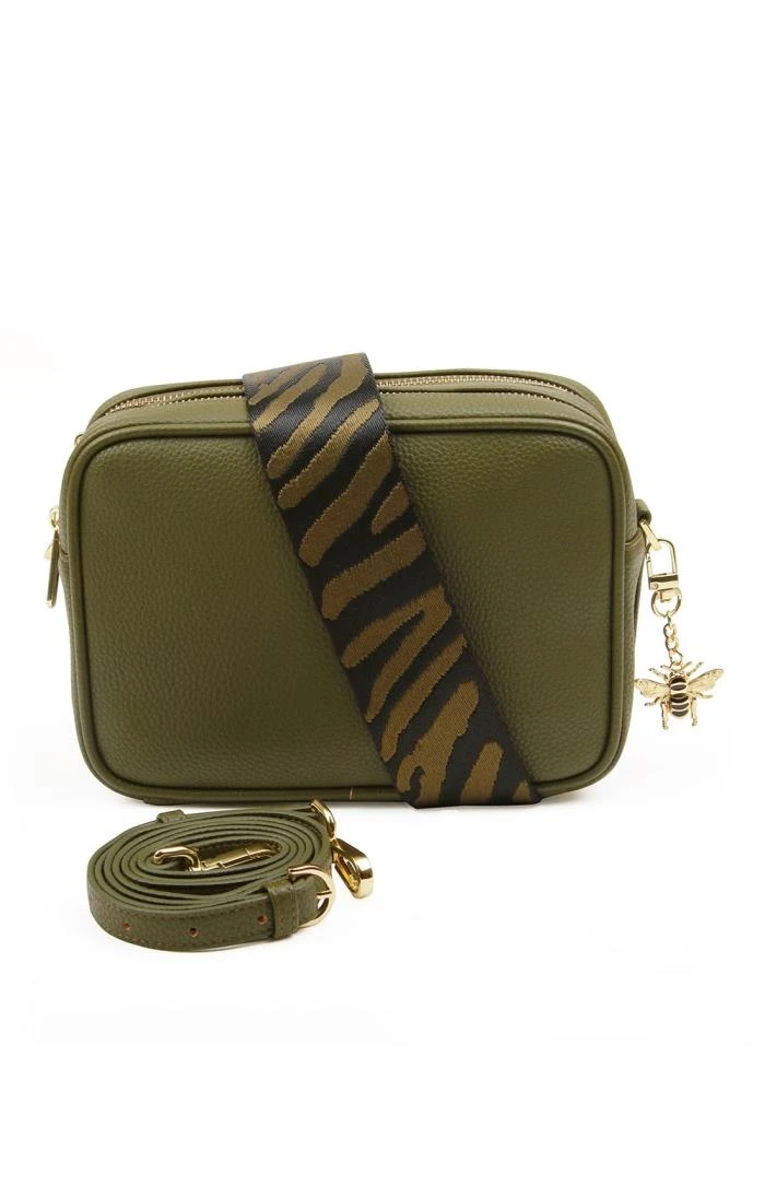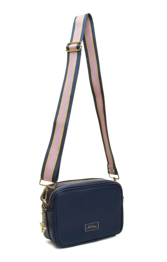 Switch between a contemporary patterned strap and a simple self-coloured option with the subtle and sophisticated two strap camera cross body bag by Alice Wheeler. The two zipped compartments have plenty of room to hold all your essential possessions, while a discreet inner zipped section creates a secure space for any valuables. Gleaming gold-coloured hardware and a cute bee charm round things off with an accent of individuality.