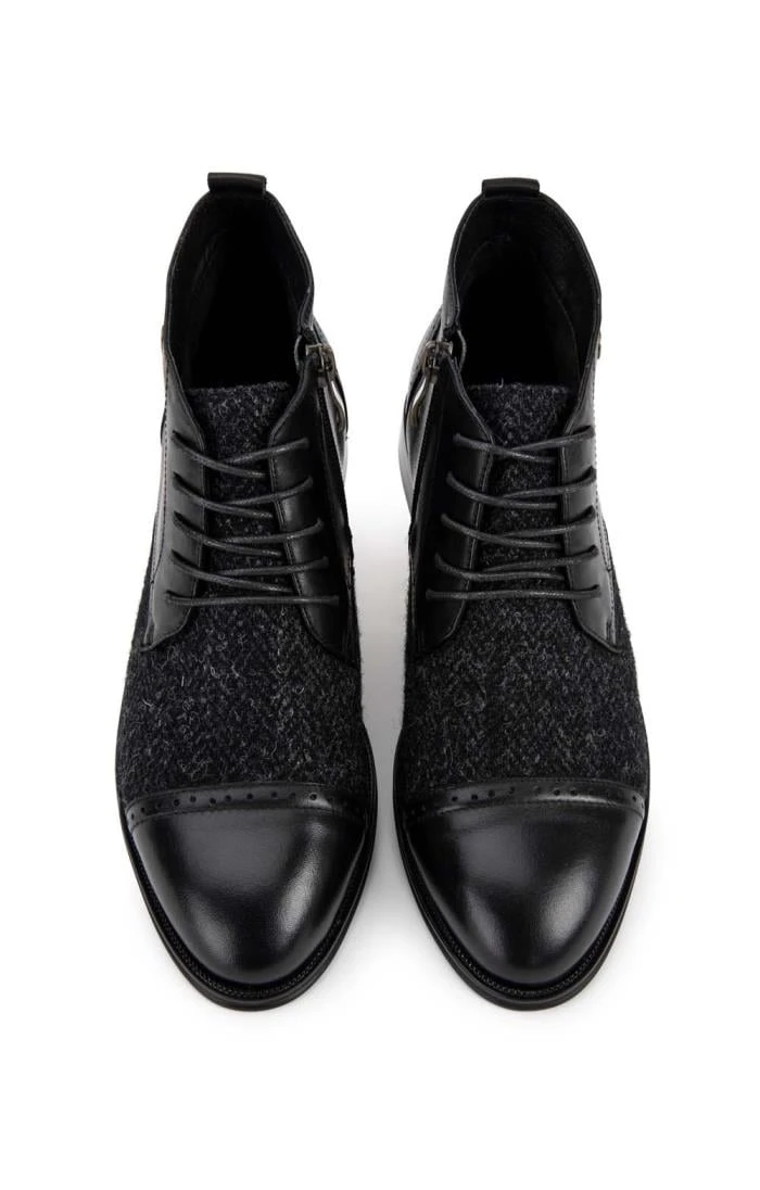 The Barra shoe is a confident combination of fine Buffalo leather and handmade herringbone Harris Tweed. The two textiles complement each other beautifully to form a traditional-style brogue with an extra-special twist. Also featuring a super fine ankle lining, rubber sole for improved grip and an inside zip opening, it’s a design that’s perfect for any occasion and one that will give pleasure for many years to come.