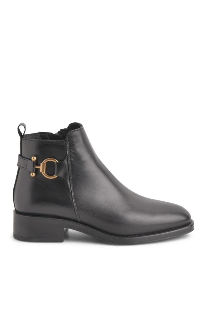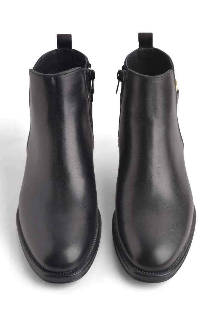 Our ladies buckle ankle boot in premium leather is a striking fashion piece that never skimps on style. Deftly constructed in premium leather with a rich shine of quality, a gleaming buckle to the side attracts the eye and completes this unique design.