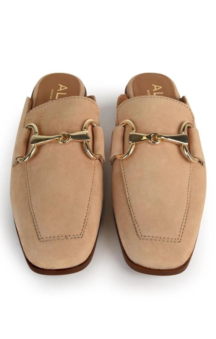 Making a style statement out of simplicity with their graceful shaping and gently cushioned footbed, the buckle mules in soft suede leather are a shoe-in for slick city-to-country accessorising. Elegantly adorned with a gleaming snaffle detail, these comfy and chic slip-ons will spur you to the front of the fashion field whether you rein them back with jeans and a tweed jacket or dress them up with a woollen skirt and silk blouse.