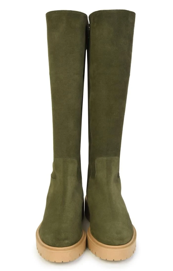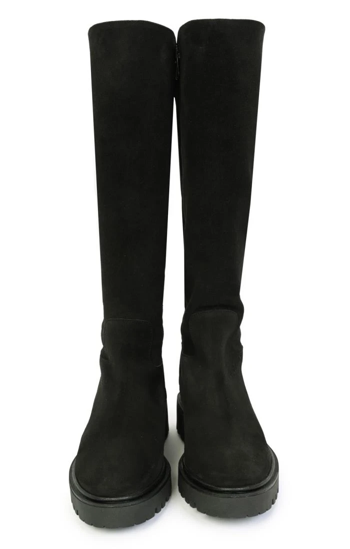 Finely textured premium suede brings a lavish tactile appeal to these chunky sole tall boots, which feature a full-length side zip and a metal stud at the top rear. Impeccably smart with cleanly-sculpted lines that show off their continental origins, these stunning boots will always be appreciated.