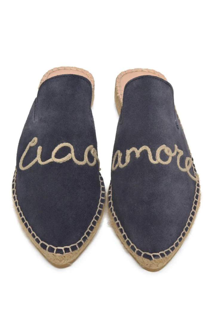 An innovative and expressive take on an enduring summer essential, the Ciao Amore slip-ons feature a traditional espadrille sole in natural jute, topped with a tactile suede upper. Tapering to a contemporary pointed toe, these fabulous-looking flats are handmade in Spain for a mark of true authenticity.