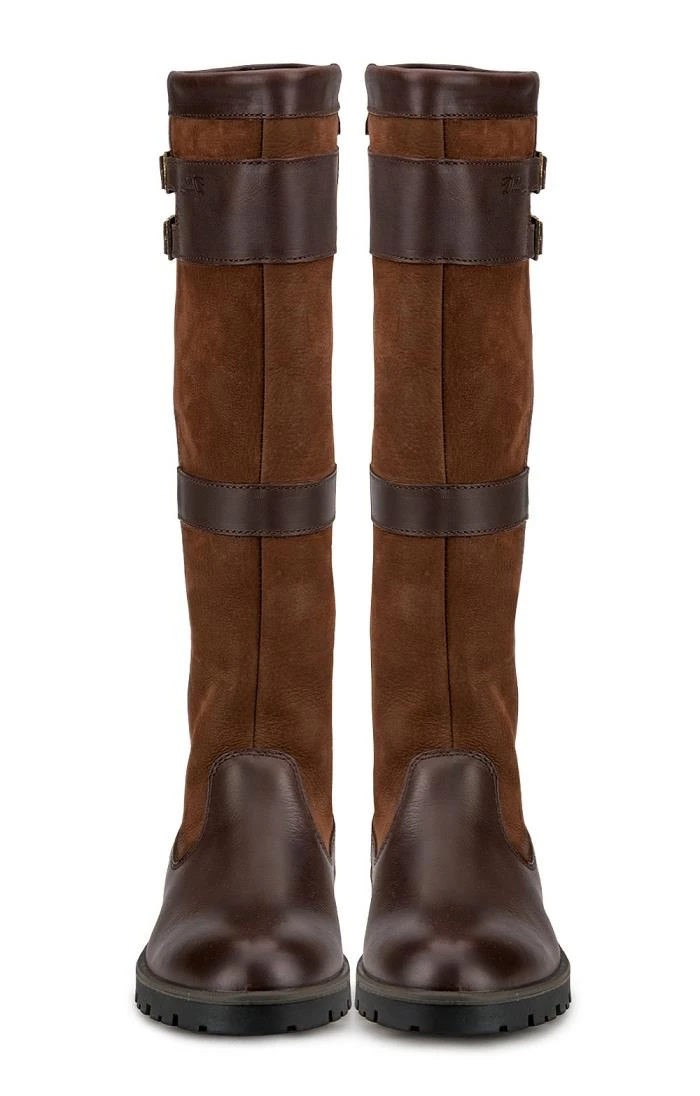 A contemporary take on a classic style, Dubarry of Ireland’s Long Ford boot combines the traditional features with an urban style. Crafted with Dubarry’s water resistant DryFast-DrySoft leathers, it features an inner GORE-TEX liner that is both waterproof and breathable for heavy-duty comfort, as well as a PU inner fill with moulded bi-colour outer shell. As well as this PU inner fill offering underfoot padding and shock absorbency, there is assisted foot entry thanks to an elasticised heel panel that also gives an elegant boot silhouette. This style is completed with a double buckle detail and side panel, completing the look.
