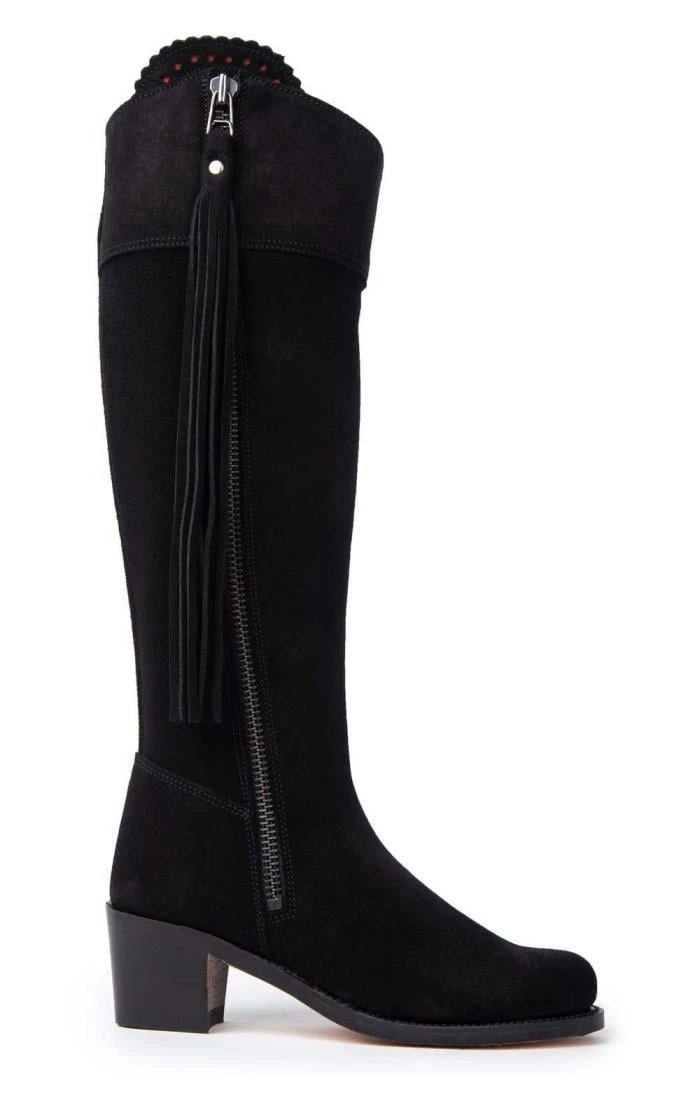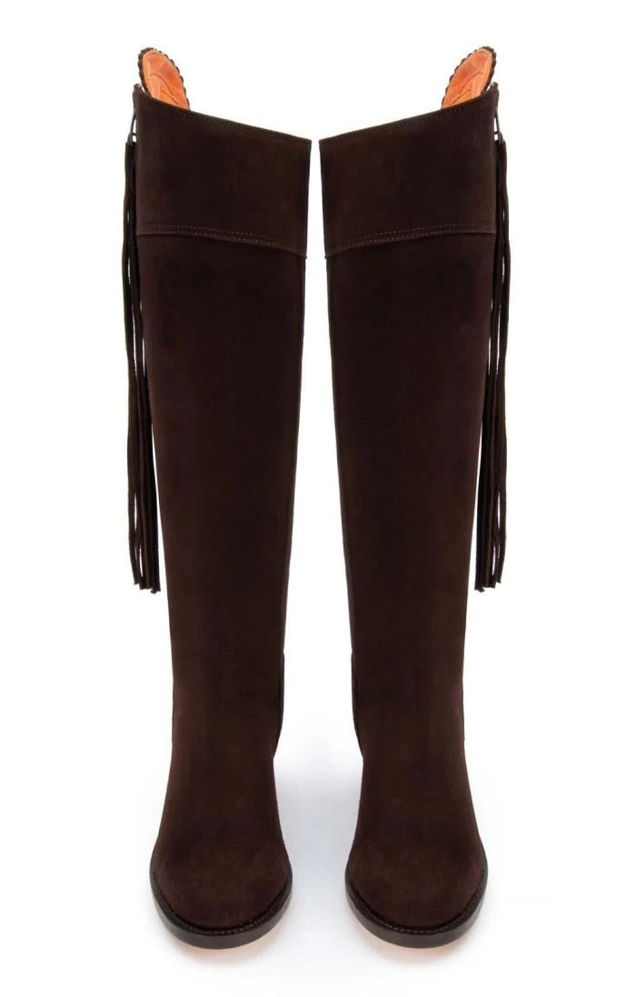 Richly textured suede bring a wonderful sheen to these classic suede riding boots, complete with full-length side zip and tassels that can be cut your desired length.