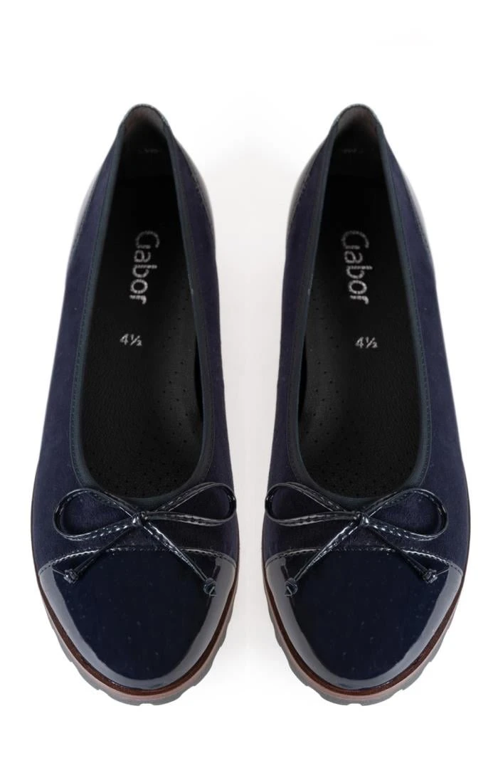 The Gabor patent suede pump brings together the rich texture of premium suede with the sparkling shine of patent leather to excellent effect. Also featuring a neat tie detail at the front, this is a simple yet beautifully crafted design that will really make an impact at any occasion or event.