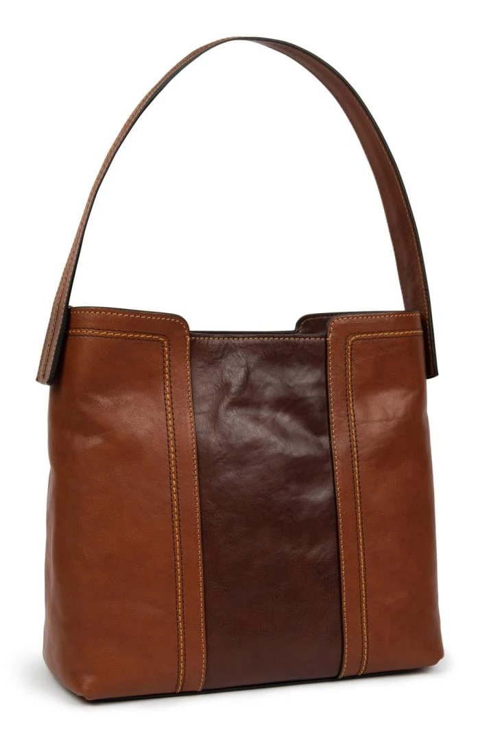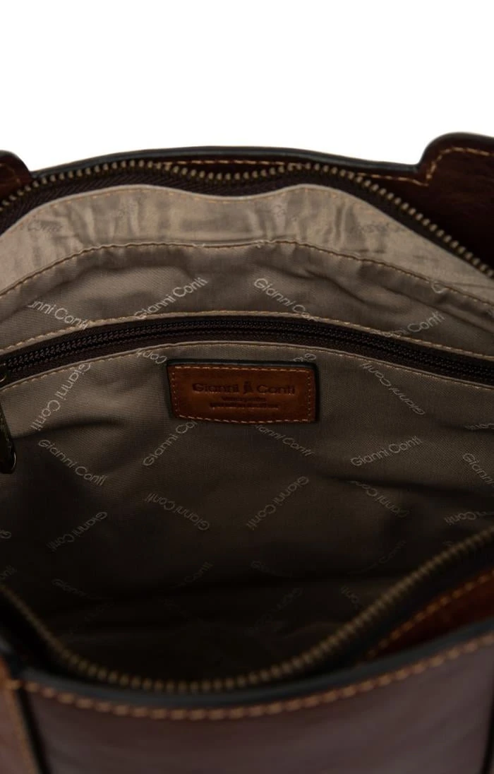 Premium leather and Italian craftsmanship are combined in this exquisite ladies Gianni Conti two tone shoulder bag. Featuring an attractive self-coloured handle, a removable shoulder strap and a zipped central compartment, this versatile handbag is fully lined and contains an internal pocket for loose change and small items.
