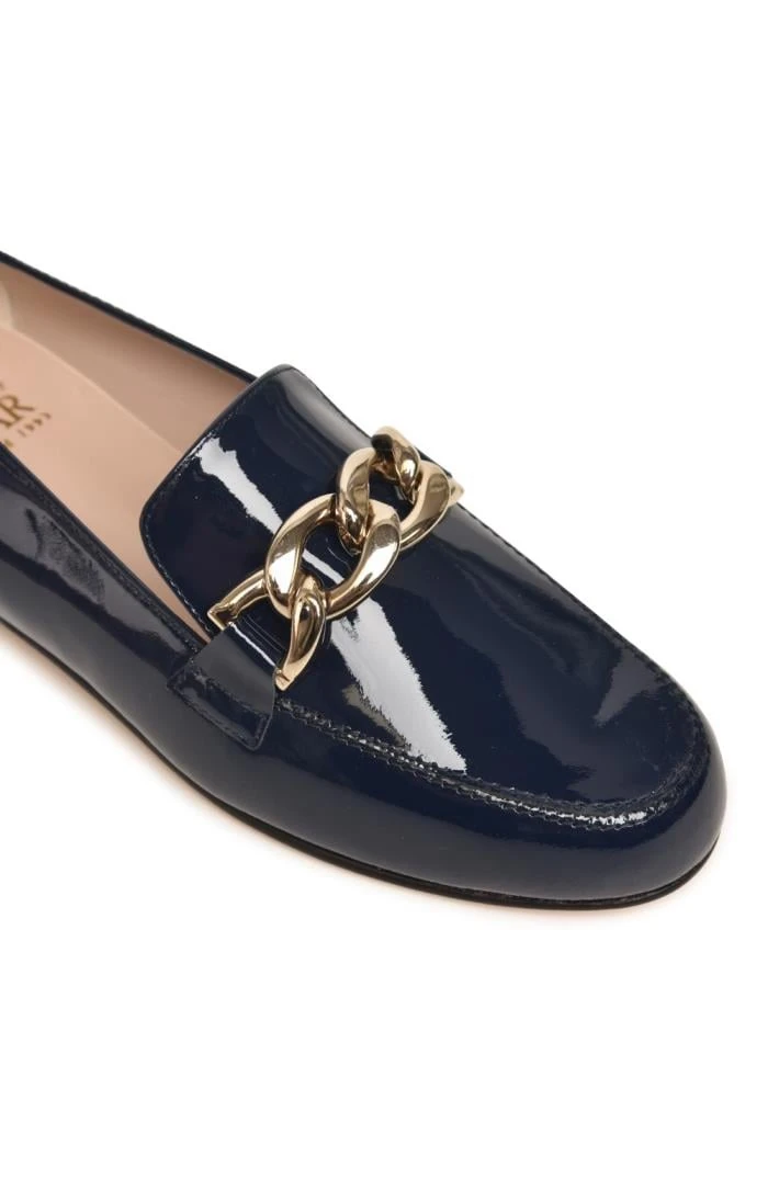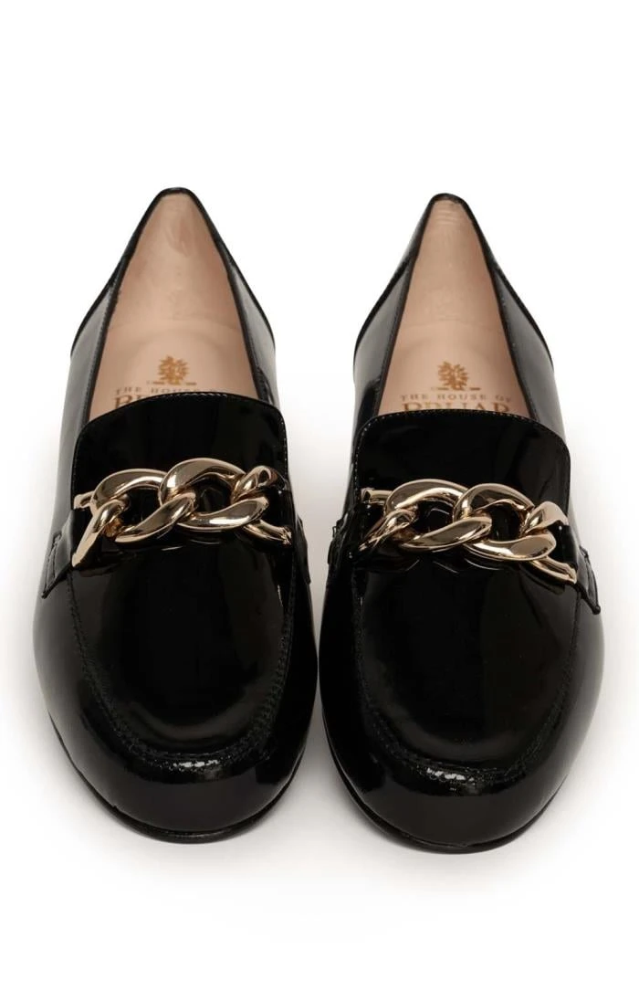 Brilliantly combining enduring style with lasting comfort, this leather loafer with chain has a beautiful simplicity that makes it ideal for everyday wear. A gold-effect chain runs across the width of the shoe, adding an element of opulence to this classic design.