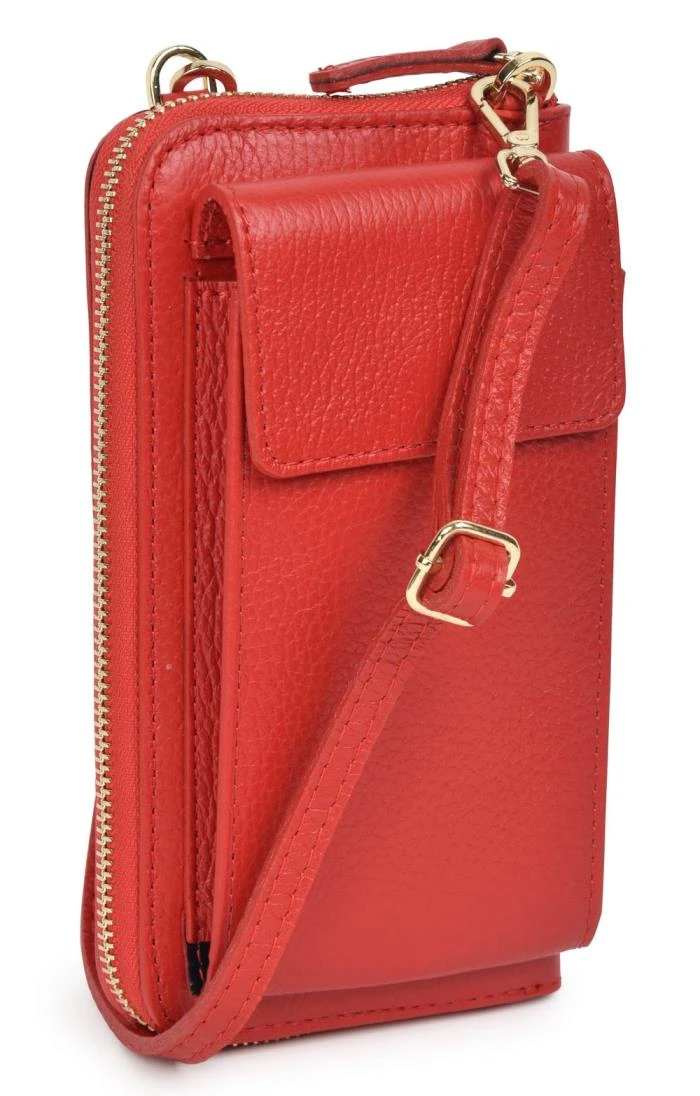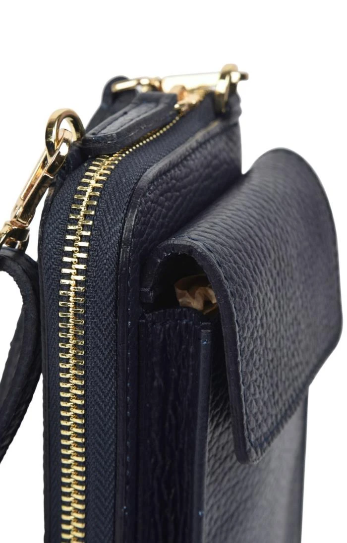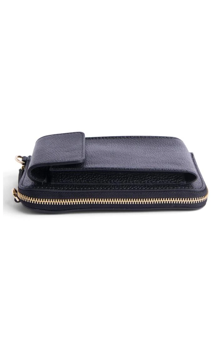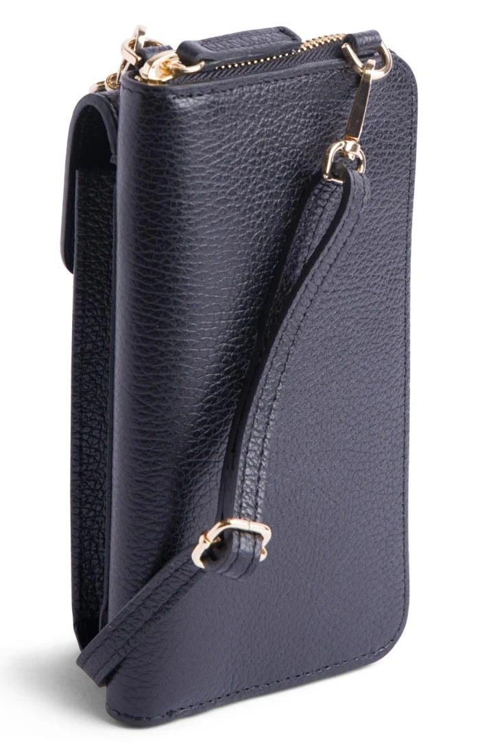 Travel light this season with the phonebag/purse in 100% leather. Combining a flap cover phone holder and zip around wallet with an adjustable wrist strap, you’ll feel wonderfully unencumbered with this neatly designed accessory that replaces bulky bags and all their associated clutter.