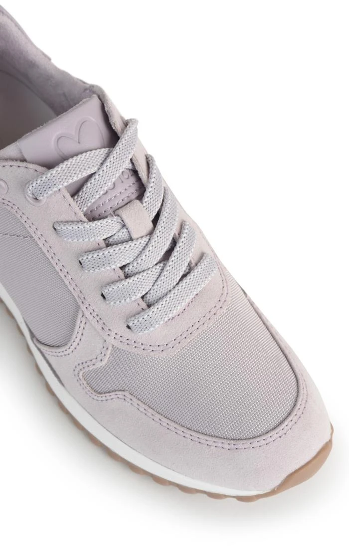 Bring a touch of glamour to shopping and sightseeing trips with these gently glitzy suede effect sneakers by Marco Tozzi. With flashes of patent at the heel and tongue, wide spotted laces and a white rubber sole with contrasting coloured grip, these grow- up trainers prioritise both style and comfort for ladies who like to look good when they’re on the go.