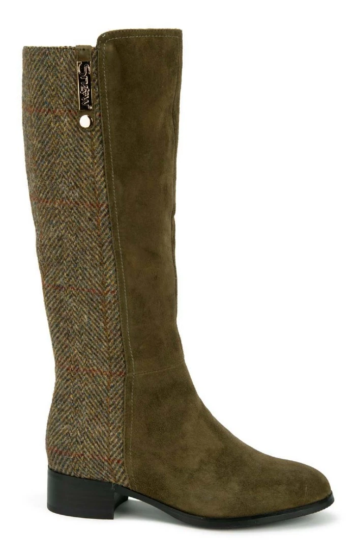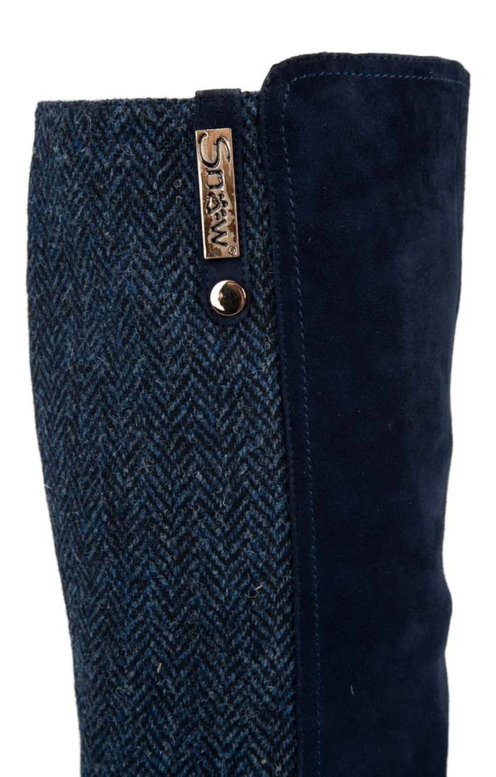 Soft, supple suede is complemented by meticulously hand-woven herringbone Harris Tweed in the wonderfully snug Roxburgh long boot. Lined with Australian sheepskin below the ankle, it features a side zip and small block heel. This original and eye-catching boot has a special sophistication that gives it a timeless appeal.