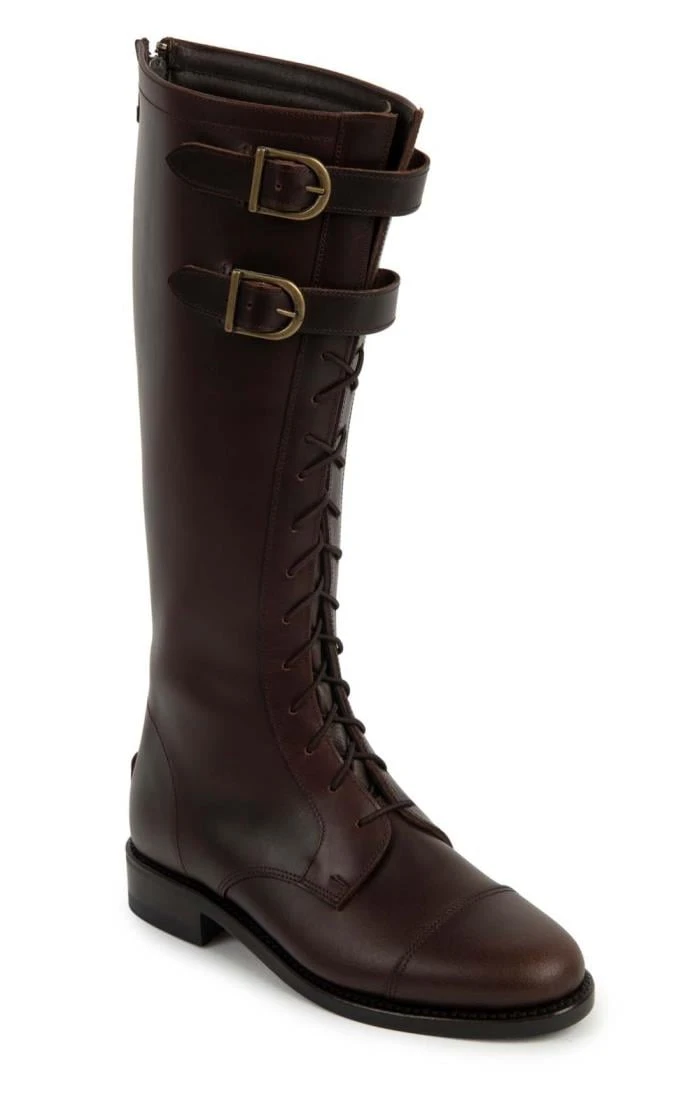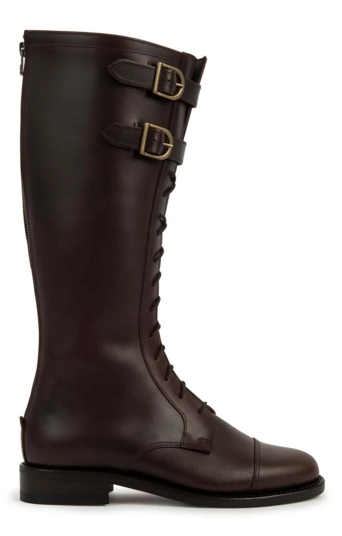 Kick off your new boot collection with these highly desirable lace and buckle boots in 100% leather. Meticulously made in Spain, these beautifully crafted knee high boots display impeccable attention to detail from top to toe. The lacing to the front and two buckle fastenings are backed up by a full length zip to the rear for ease of access and they feature immaculate stitching throughout.