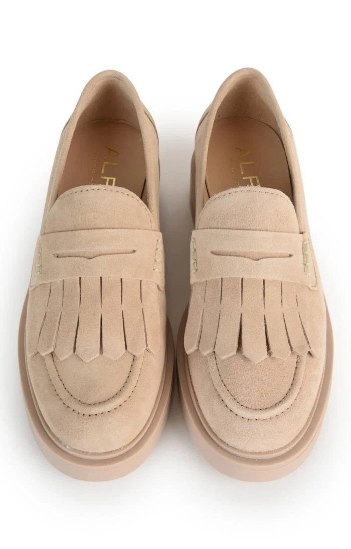 Moulded from peachy suede leather and sitting on a chunky shock-absorbing heel, these tassel penny loafers combine classic chic with cushioned comfort. Beautifully finished with fringed tabs and immaculate stitched details, these premium preppy shoes are a treat for your toes and a foot up for your fashion sense. Pair with soft wide-legged trousers or a slimline jersey skirt for your personal take on this enduring style.