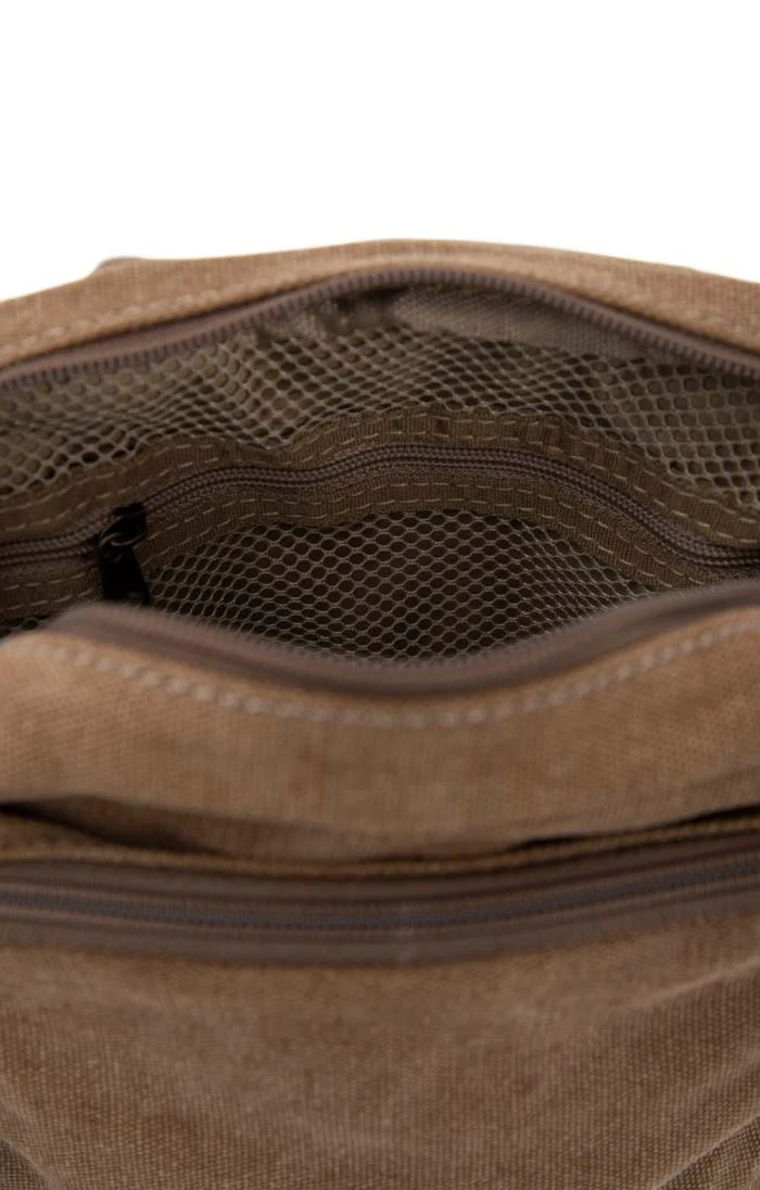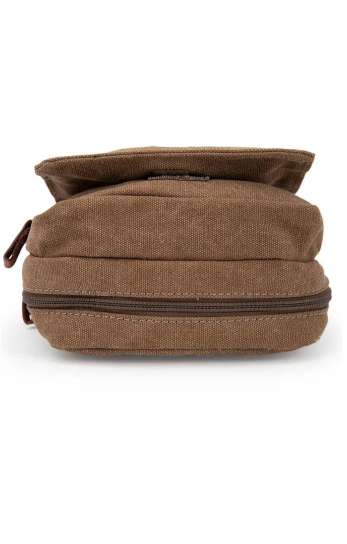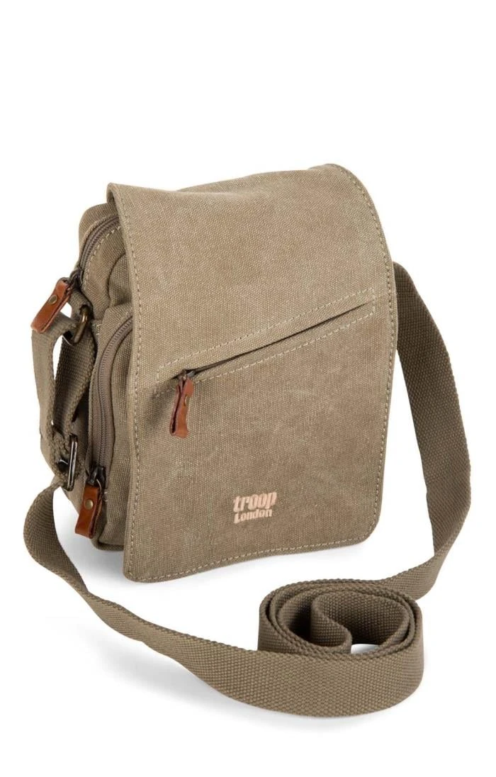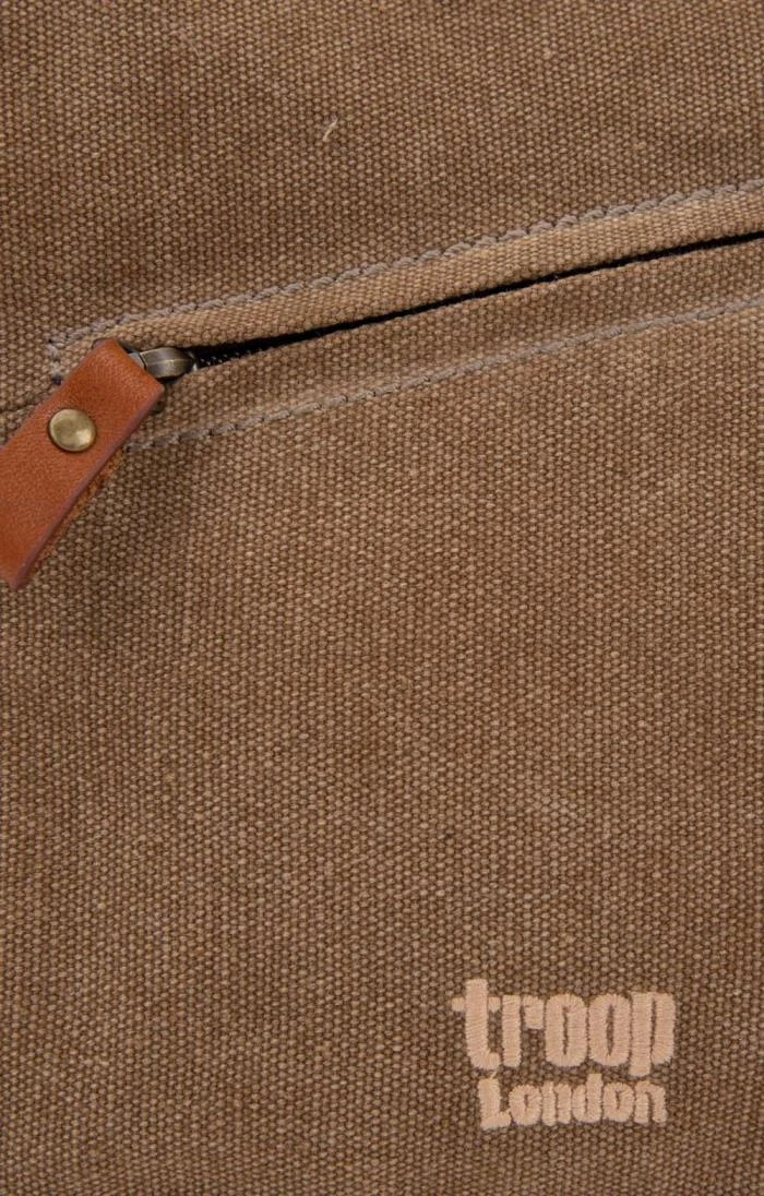 Made in durable canvas with leather details and brass plated fittings, the Troop small slant zip bag is a great way to keep all your essentials close to hand when on the go. An adjustable shoulder strap ensures the perfect fit while a zip that runs along the bottom of the bag allows you to increase its volume as and when you need to. With a secure zip pocket at the rear and a spacious pocket on the front flap with a stylish slanted zip it’s easy to keep all your accoutrements organised on your travels. Inside there’s a netted zip pocket, special slots for your phone and pens, and a full lining throughout with Troop embossed fabric.