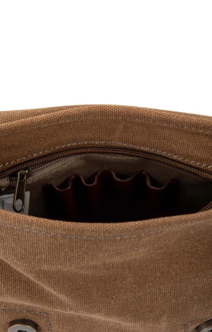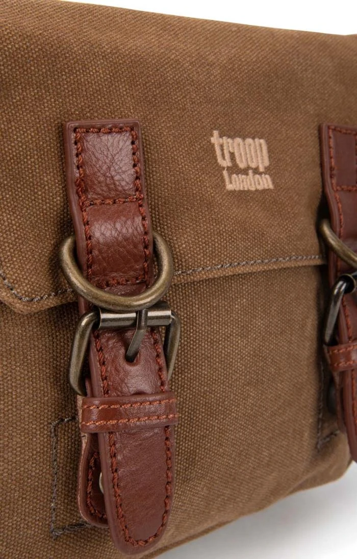 This top flap buckle bag from Troop is made in their signature tough canvas and features genuine leather trims and vintage brass fittings. Rugged yet stylish, it also has a detachable and adjustable shoulder strap, a zipped main compartment with flap and magnetic closure, rear belt loops and an expanding zip at the bottom to increase storage capacity when needed. The inside is lined in PU-coated cotton and has a secure zipped pocket and four leather pen loops to help keep your valuables organised and close to hand.