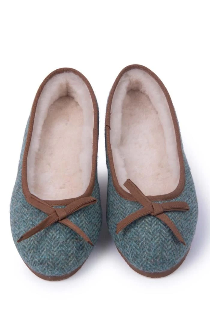 These Tweed pump slippers are lined with fleecy natural sheepskin for a cosy and cushioned feel. The pump shape holds neatly to the foot making these the perfect slippers for ladies who love to stay on their toes even on at-home days.