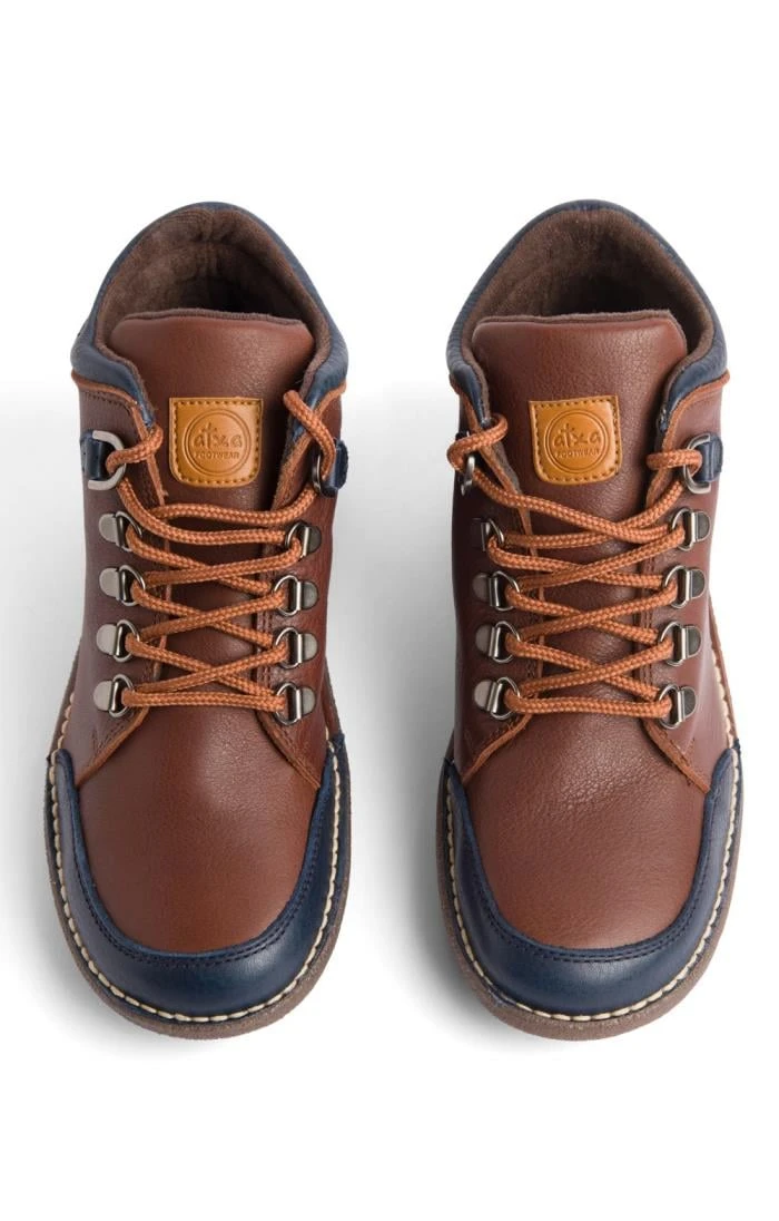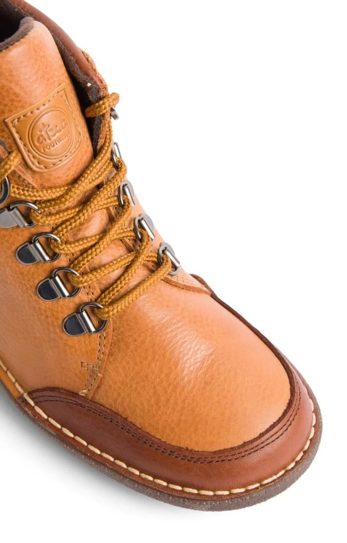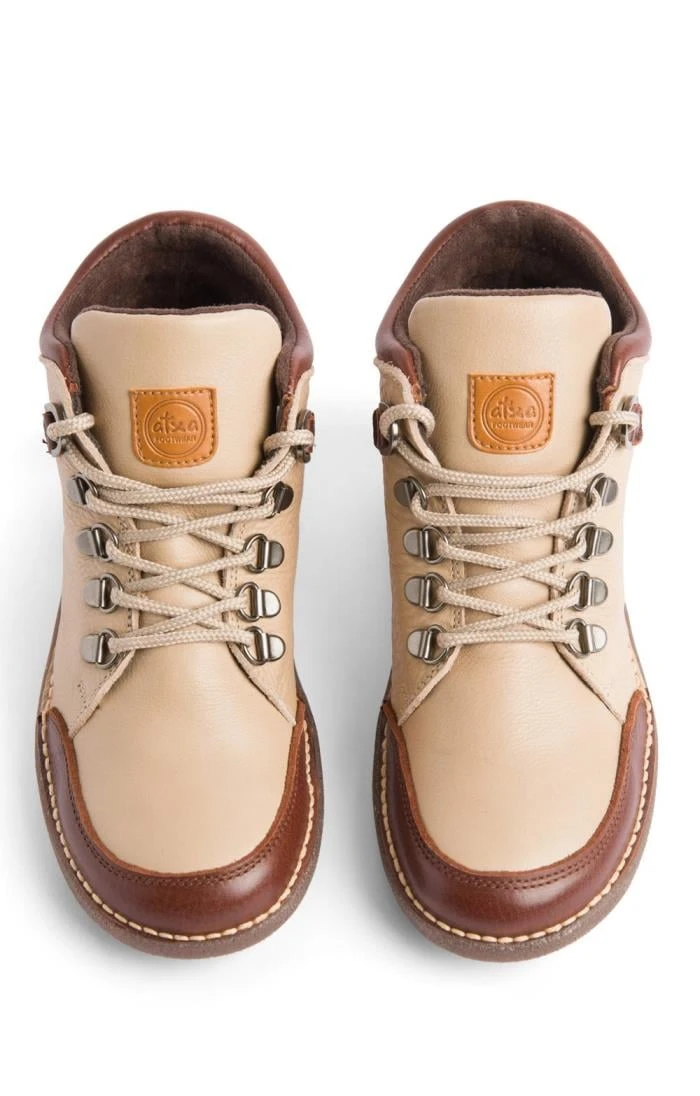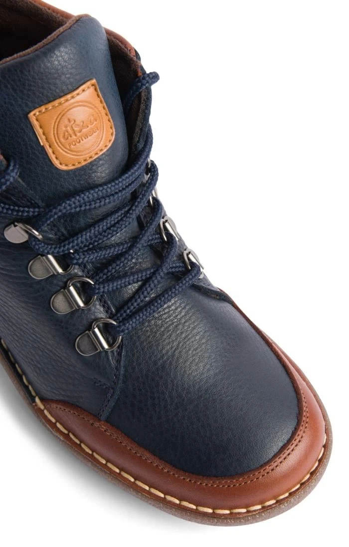 With stylish contrast colours and a subtle heel, this two tone leather boot is an excellent addition to your outdoor wardrobe this season. Featuring a toe panel, cushioned ankle and heel stripe in contrasting leather, the main body of this boot boasts a delicate texture that lends depth and character. Classic hiking boot style lacing with metallic eyelets and a thick, grippy sole give this boot a bold, rugged edge.
