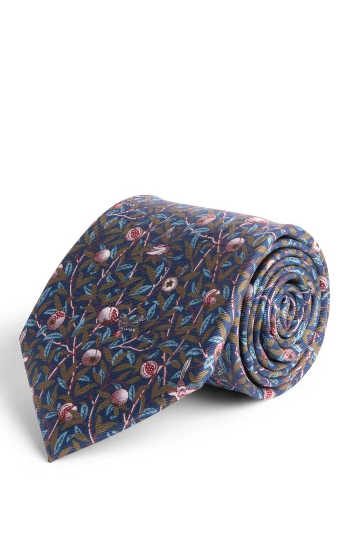 Crafted with meticulous care and finesse, the Morris pomegranate print silk tie is a meticulously hand-finished accessory fashioned from fine silk. Inspired by the iconic ‘Bird & Pomegranate’ pattern conceived by the visionary designer William Morris, this tie captures the essence of Morris’s acclaimed design, celebrated for its intricate motifs and artistic brilliance. With this silk tie, you can honour Morris’s illustrious artistic legacy, infusing your ensemble with refined sophistication.