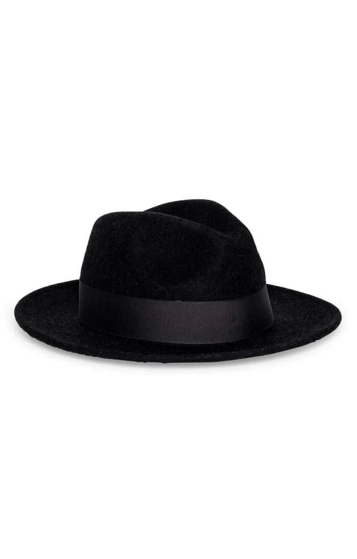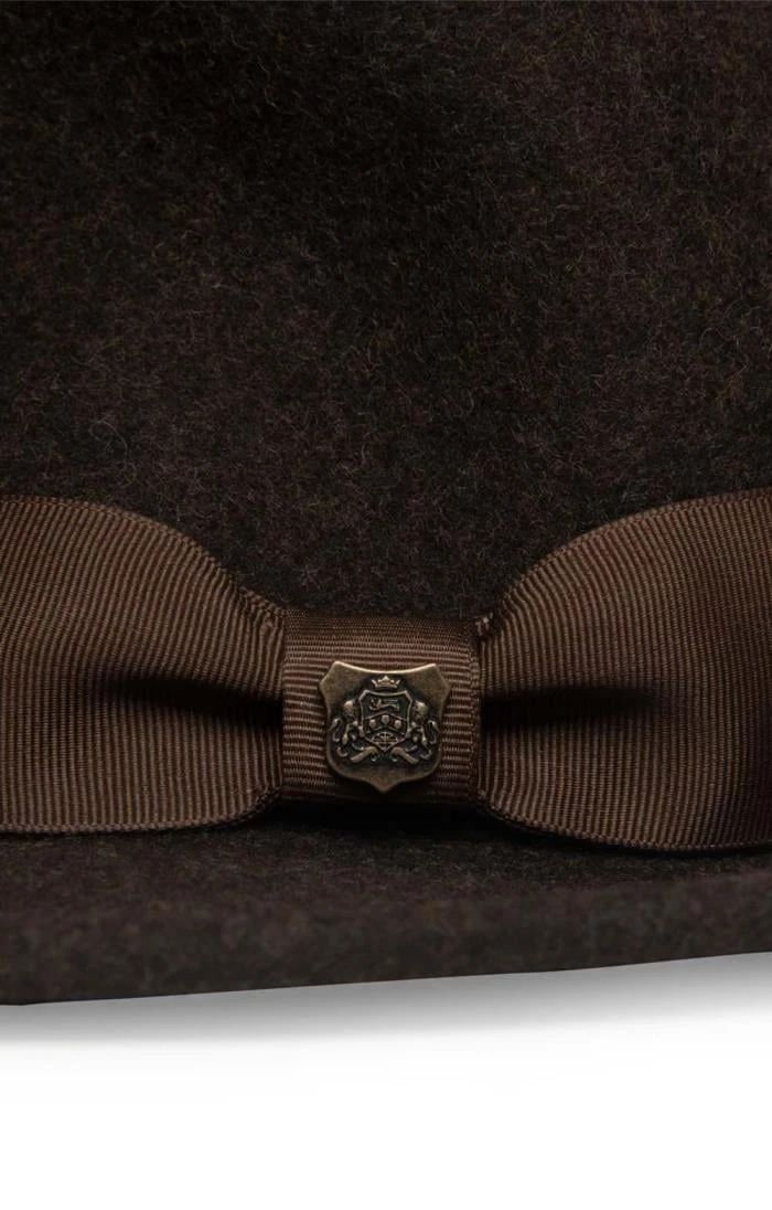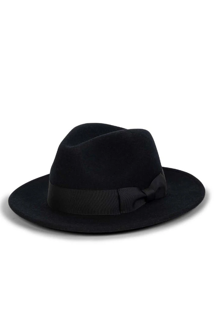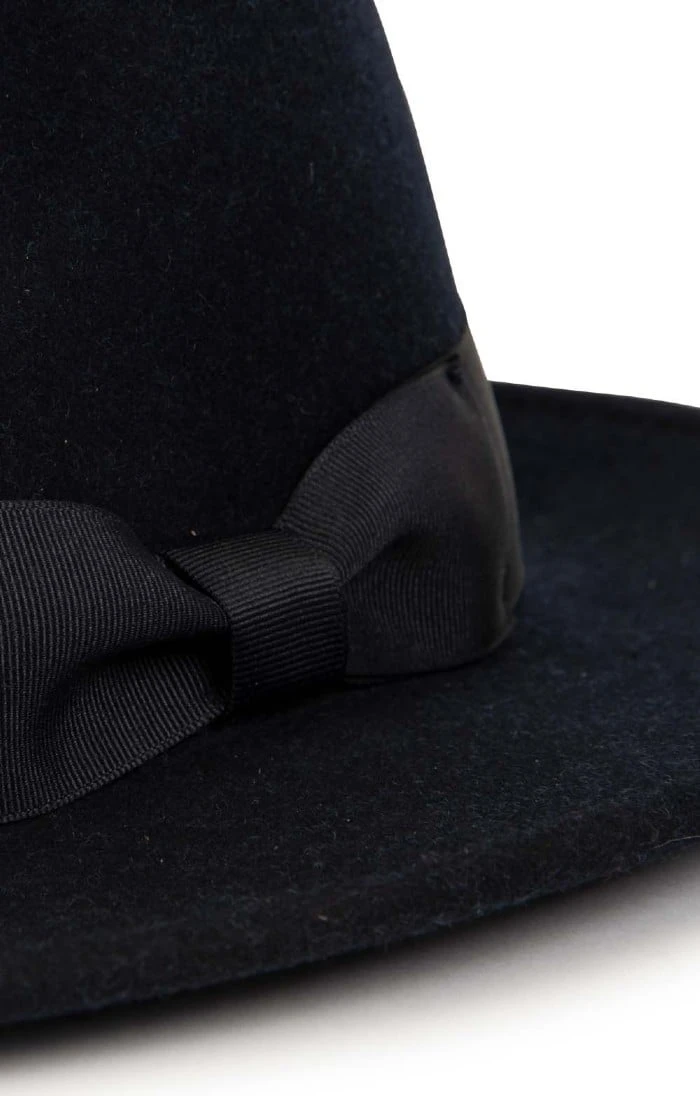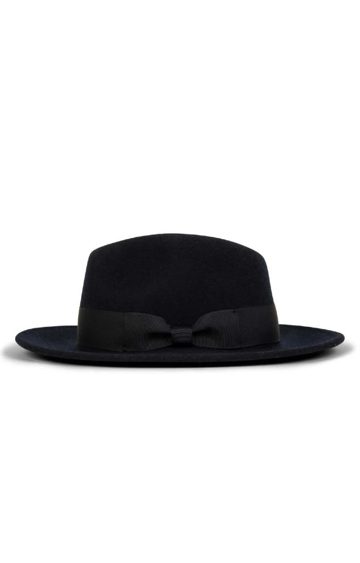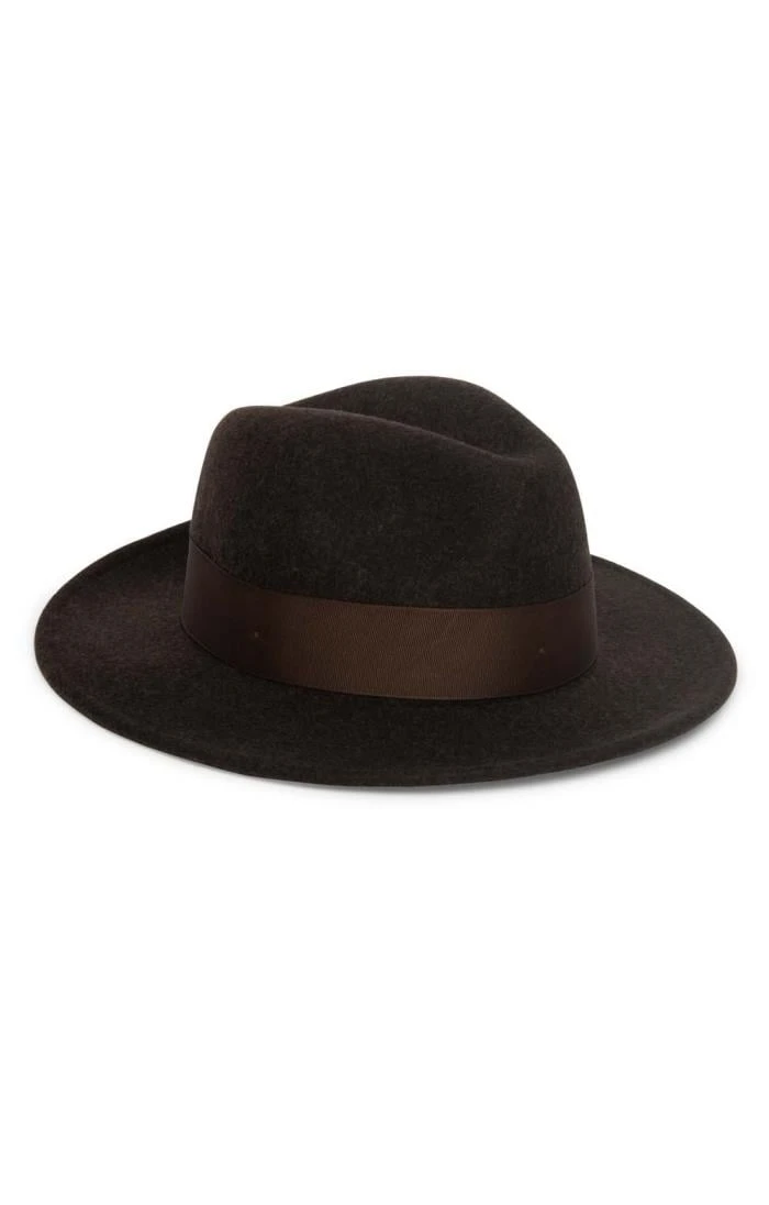 A traditional pinched crown and diamond top give this beautifully made fedora its distinctive shape. Made in water-resistant wool with a grosgrain ribbon headband.