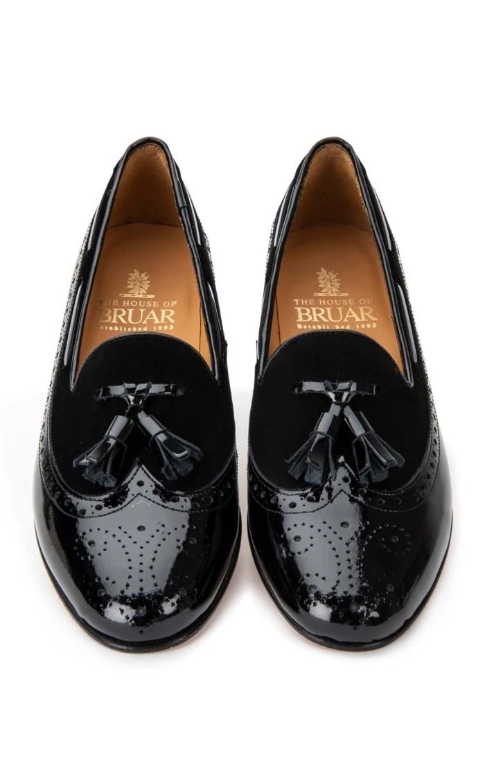 Perfect for dressing to impress this winter, these smart patent and suede tassel loafers are elegant and stylish. A timeless design that never fails to impress.