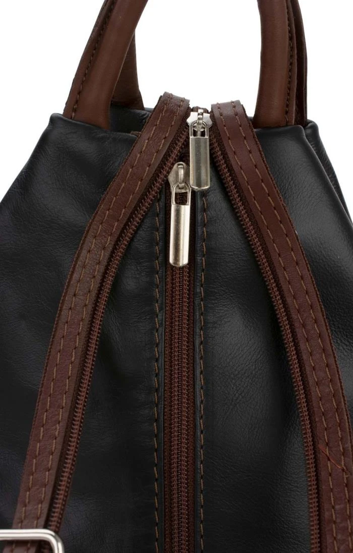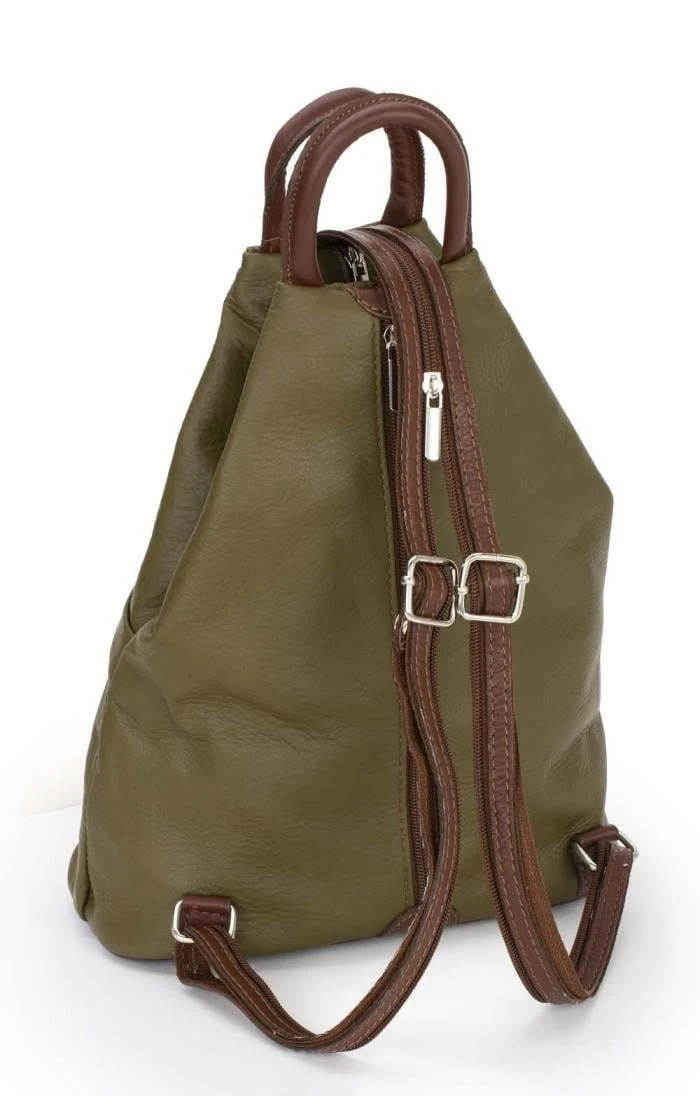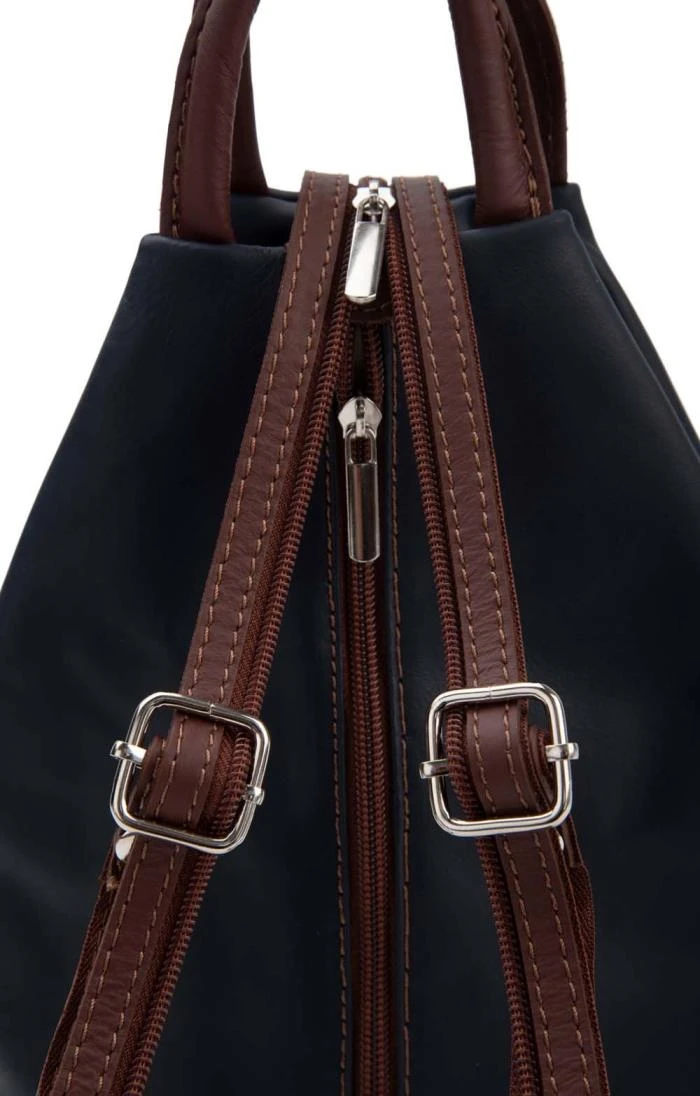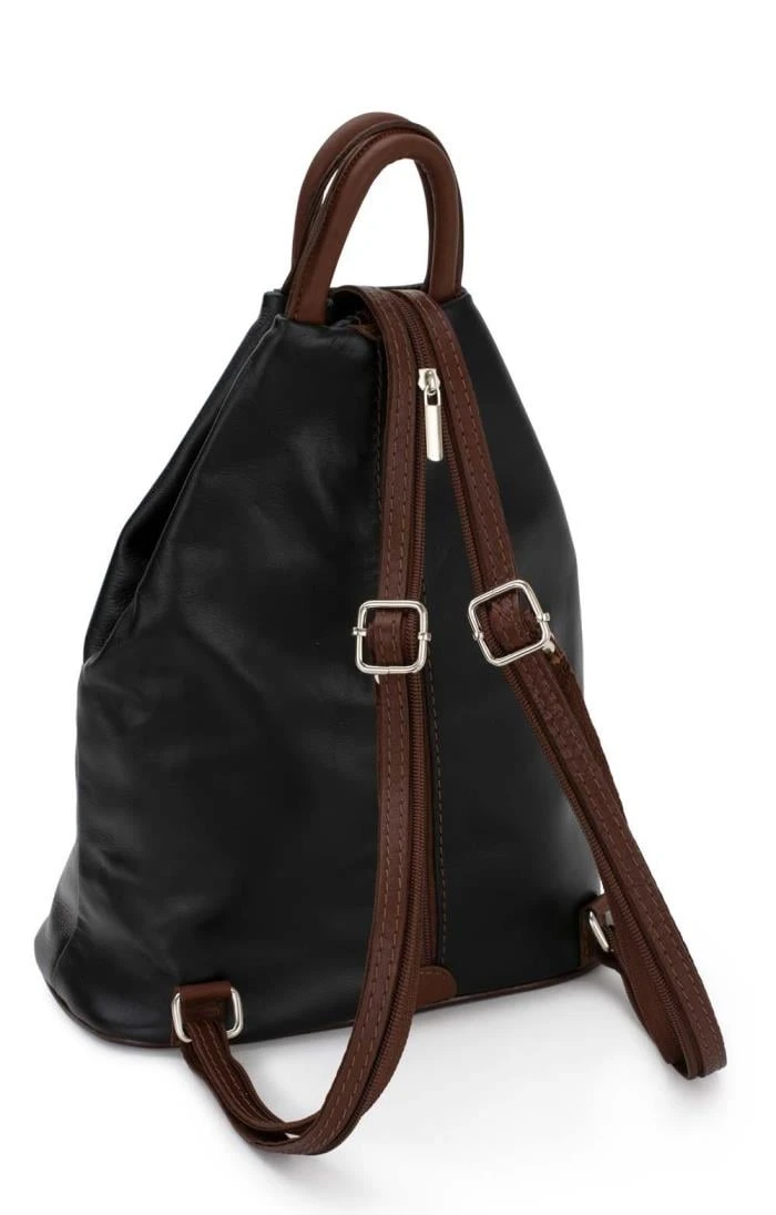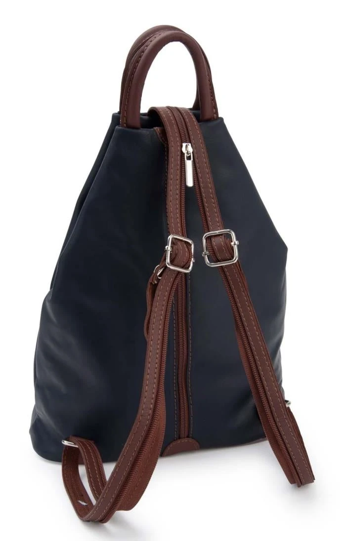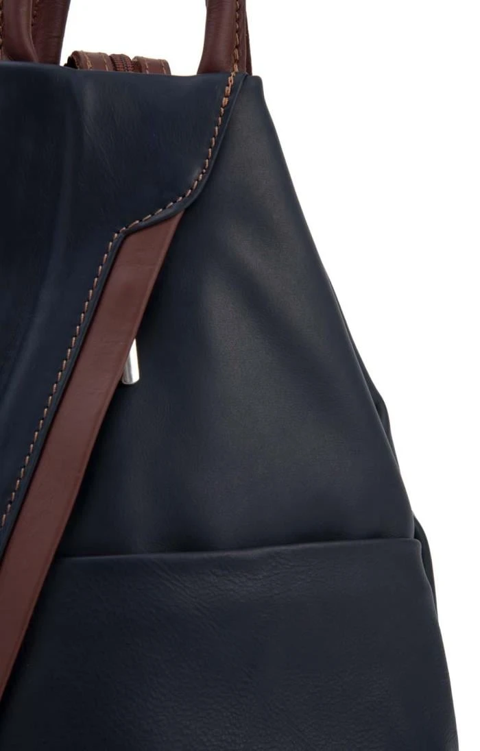 Made in Italy from the softest leather, this rucksack is a comfy and stylish way to carry your belongings. Opened by a zip running from the front to the back, there is plenty of space inside as well as another zip pocket on the inside and an open pocket on the outside. The stunning contrasting leather straps can be worn either as two straps or zipped together so it can be worn as a shoulder bag.