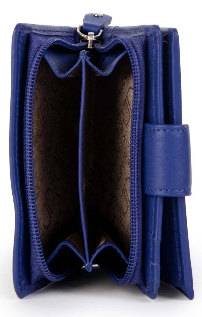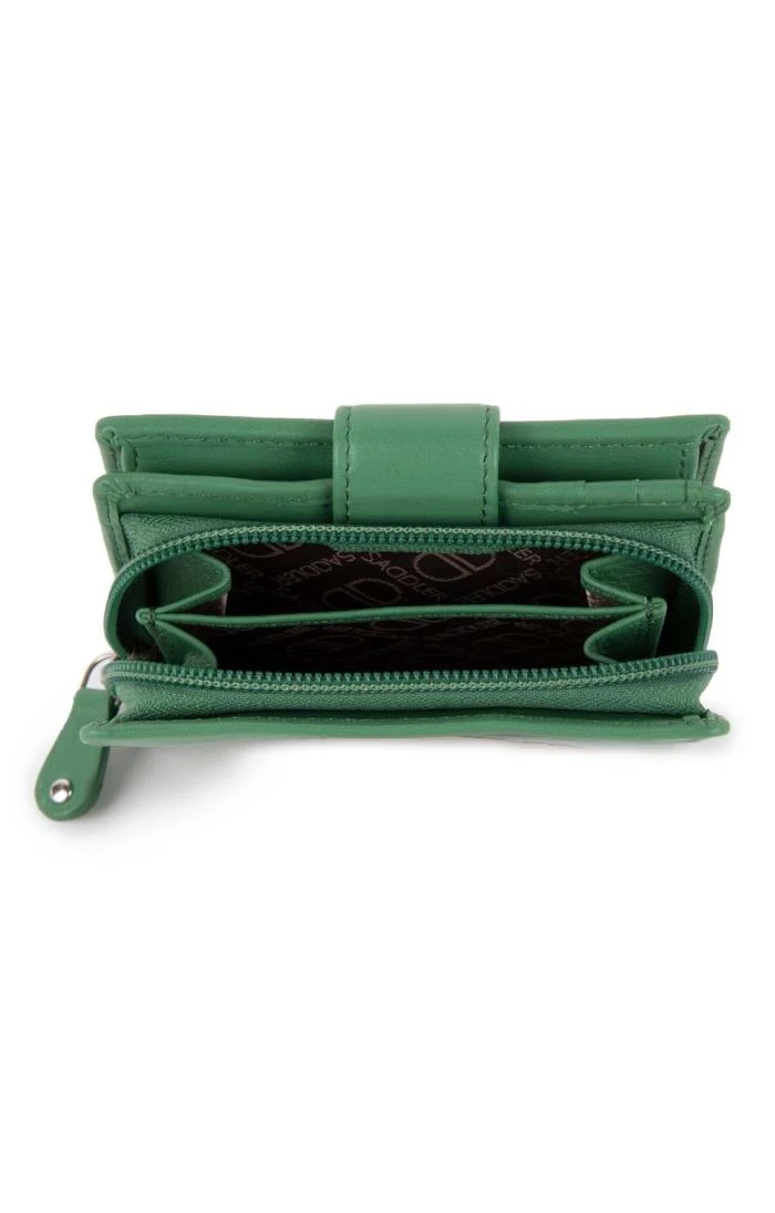 Admirably practical and compact, the stunningly simple design of this 11.5cm trifold purse makes it an ideal option for everyday, to pop into any bag. Crafted from impeccable soft and smooth leather, it is embossed with subtle Saddler branding for a further touch of quality. Holding space internally for up to 10 credit cards, it features a roomy zipped purse to the rear for coins and small keys. A large window section holds space for ID/Pass card with inner extension wing for extra card storage, and the purse is finished with a secure tab closure.