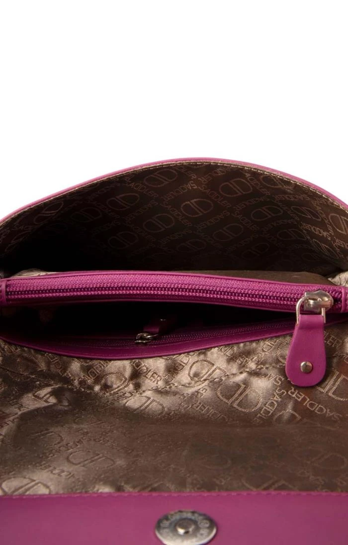 Crafted from stunningly soft and smooth leather, this scallop flapover cross body bag will elegantly enhance your essential accessory selection. Boasting practicality and versatility, it features three sections: two open sections to the main body with a zipped section to the centre and an internal zipped pocket to the rear. An adjustable and detachable shoulder strap allows this bag to be used as cross-body or as a clutch, and Saddler’s iconic embossed branding delicately decorates the front of the bag.