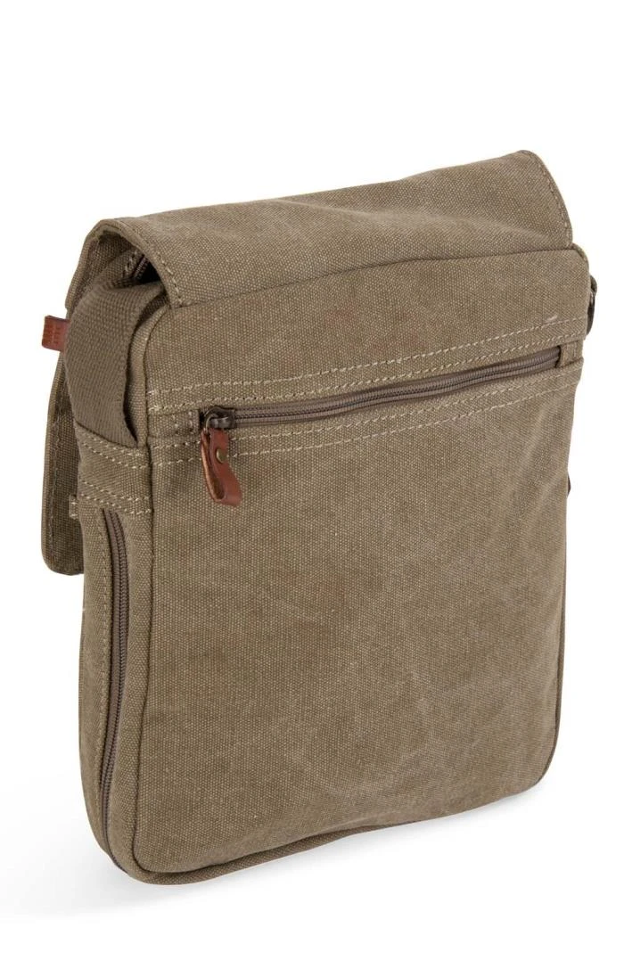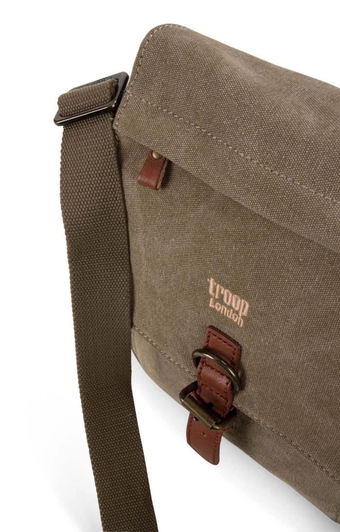 The Troop flapover adjustable cross body bag may look small but it has an expandable body with a zip-around bottom. You will also find zipped pocket compartments at the top of the front flap, under the front flap, on the rear of the bag and inside the bag. With storage and safe spaces covered, this bag is made from durable heavy canvas which means it will last you a lifetime.