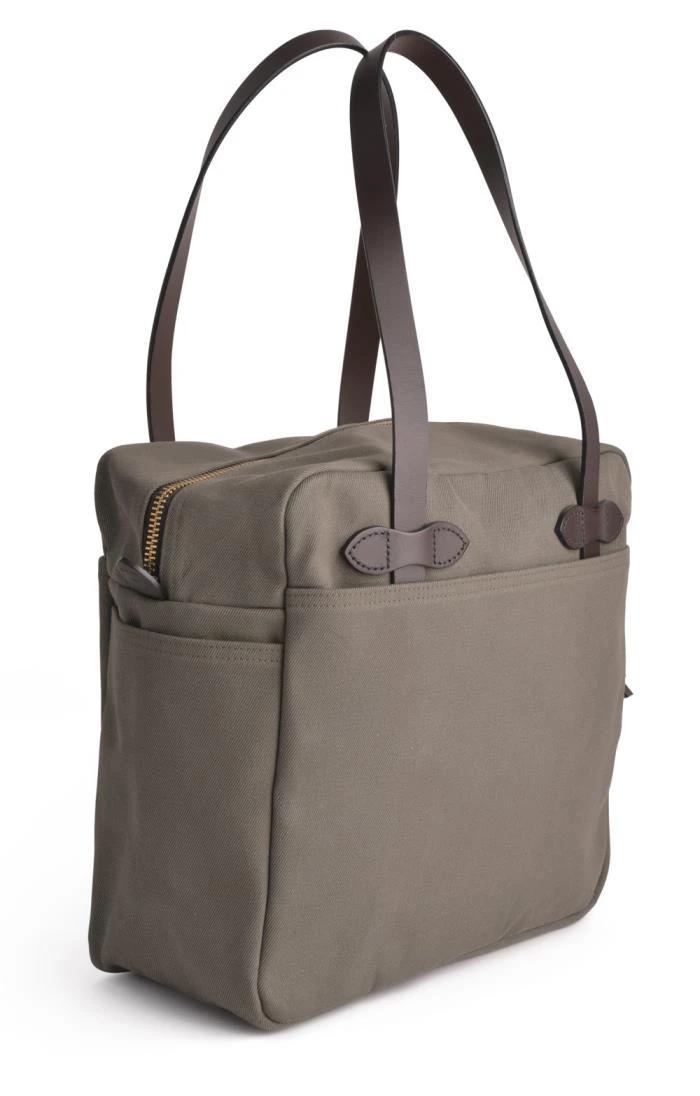 Tough and hardwearing, this zipped tote bag is rugged and practical. Resistant to wet weather, it boasts a large 25L capacity and load-carrying Italian leather carry handles. A versatile bag that works for a variety of situations from office paperwork to weekend breaks, this is a stylish bag that will last you a lifetime.